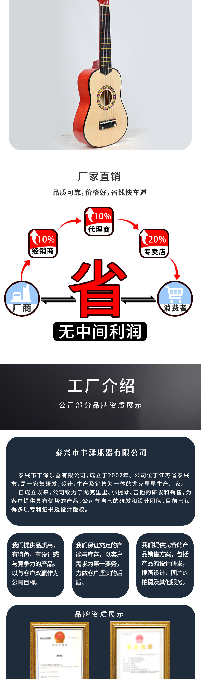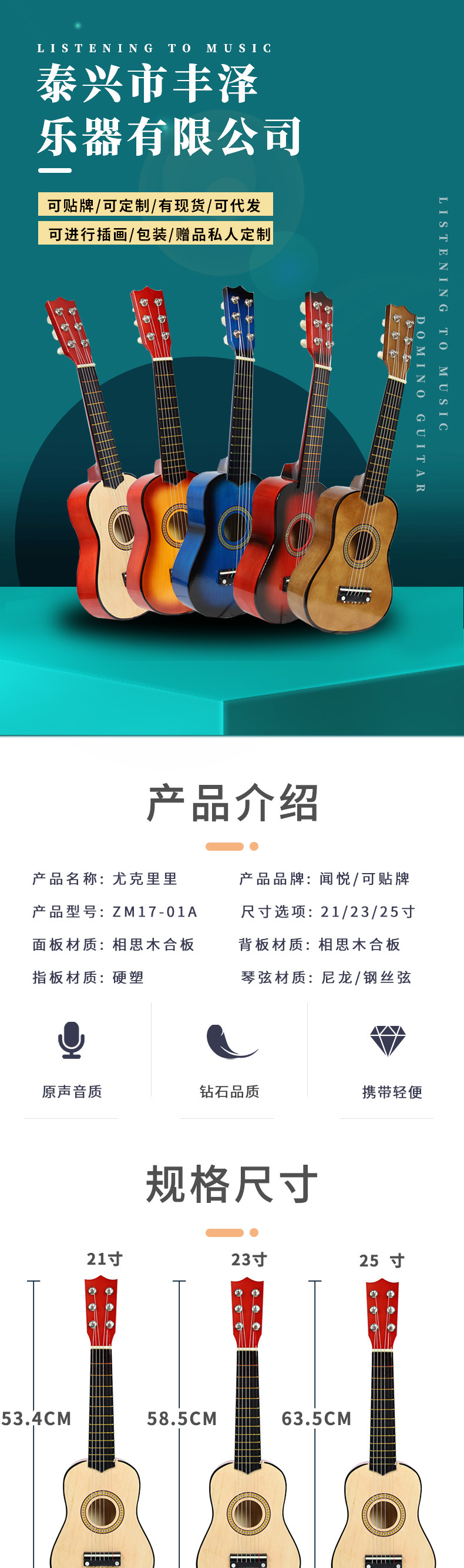 소형 기타 21인치 23inch 25inch 공장 직판 초보자용 6현 기타 참피나무 제조업체 생산 도매 재고