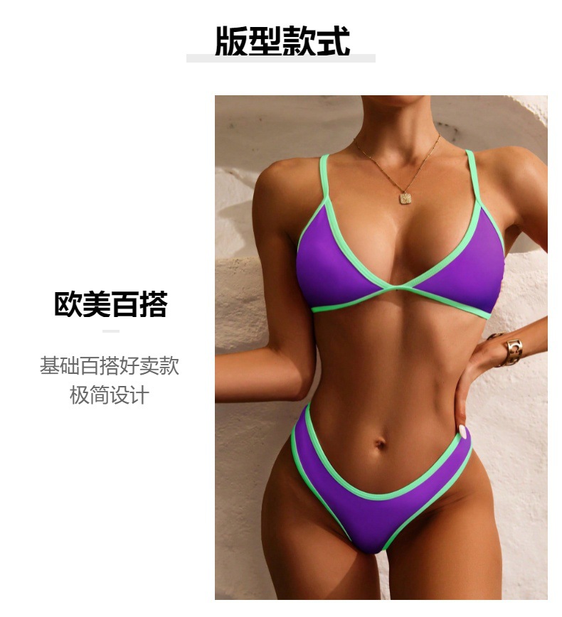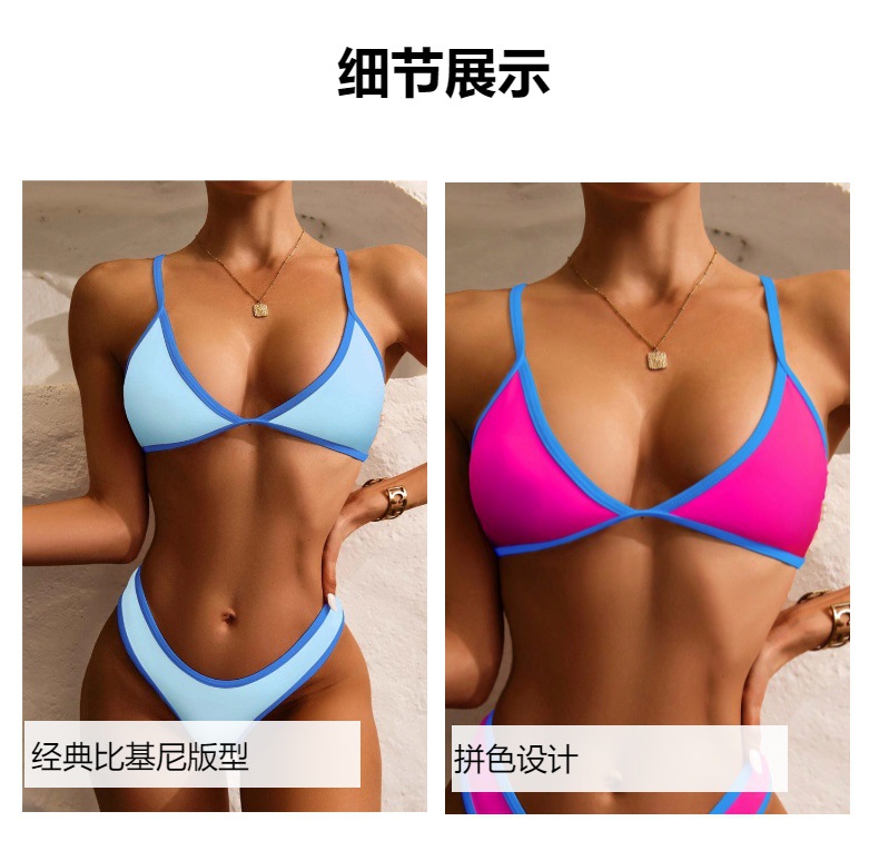 국경 2025 새로운 패션 대비 컬러 스티칭 섹시한 백리스 모인 유럽과 미국의 휴가 분할 수영복 여성 비키니스토어 가기