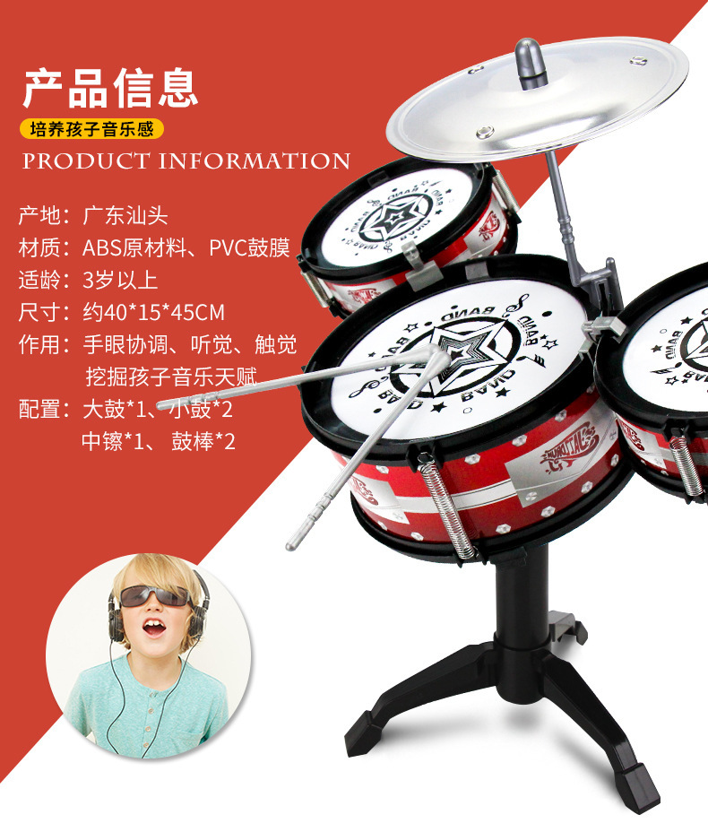 어린이 드럼 재즈 드럼 음악 관심 교육 타악기 남성 아기 3-6 세 조기 교육 교육 장난감스토어 가기