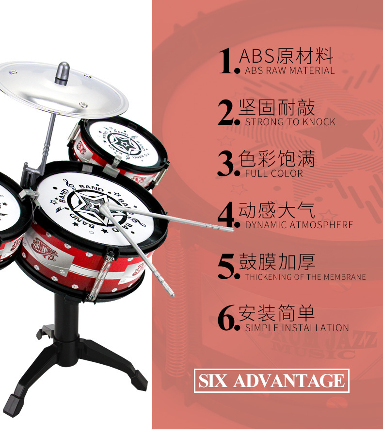 어린이 드럼 재즈 드럼 음악 관심 교육 타악기 남성 아기 3-6 세 조기 교육 교육 장난감