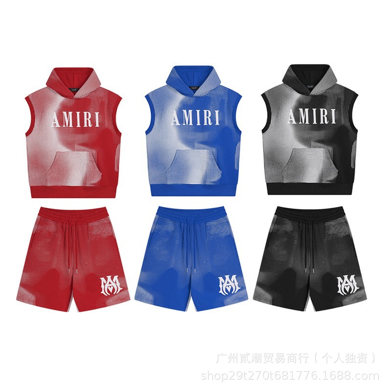 국경 간 공급 2024 미국 조수 브랜드 AMIRI 편지 로고 인쇄 남성 레저 스포츠 민소매 세트 도매