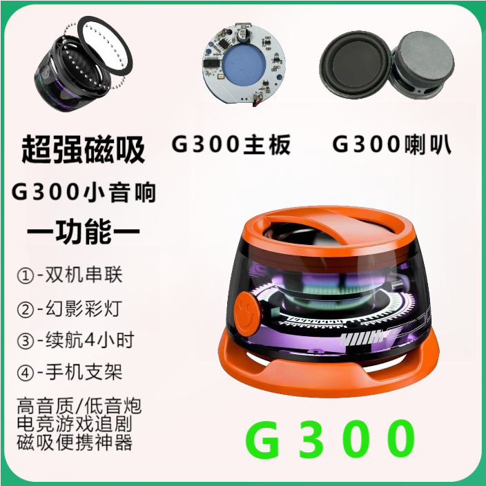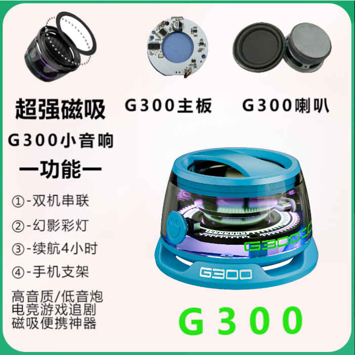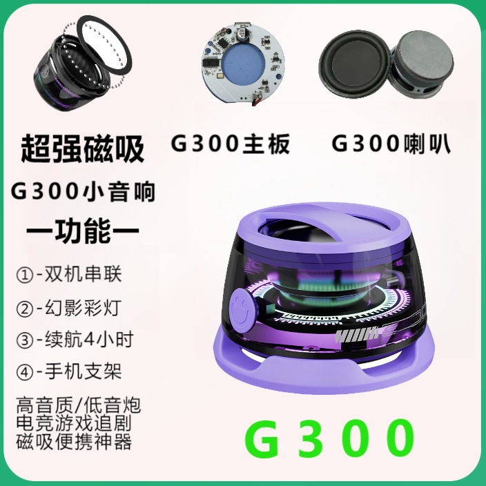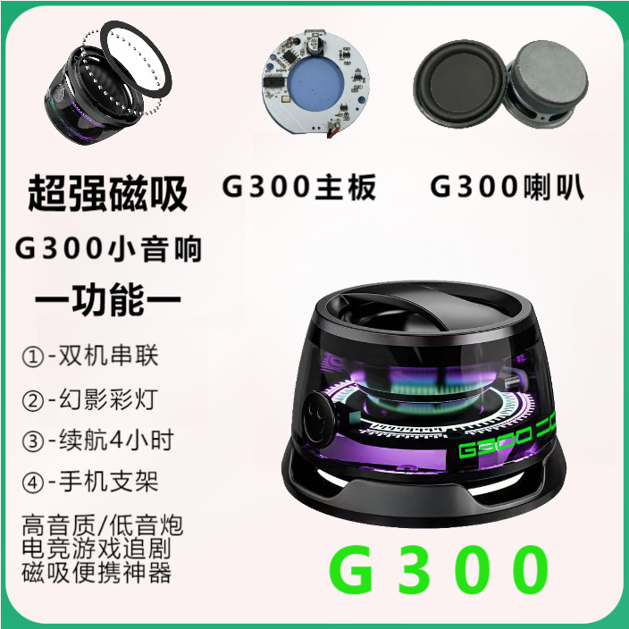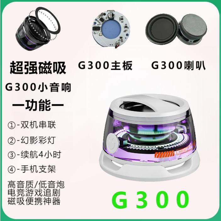 국경 G300 휴대 전화 블루투스 자기 작은 스피커 미니 휴대용 서브 우퍼 높은 음질 휴대 전화 홀더 탠덤스토어 가기