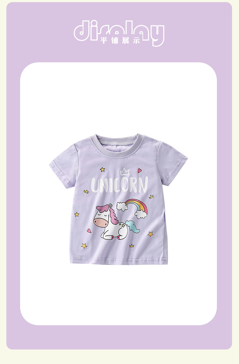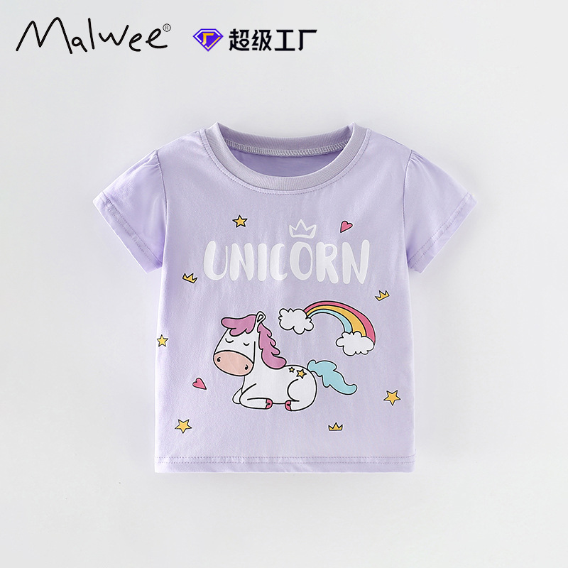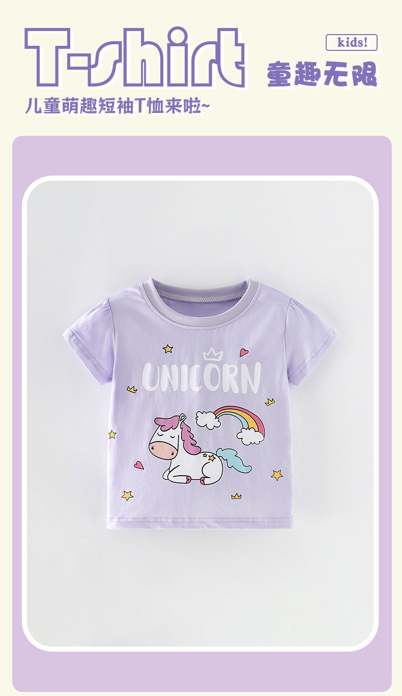 말위 소녀 짧은 소매 여름 새로운 유럽과 미국 어린이 레저 라운드 넥 티셔츠 서양식 어린 소녀 탑스토어 가기