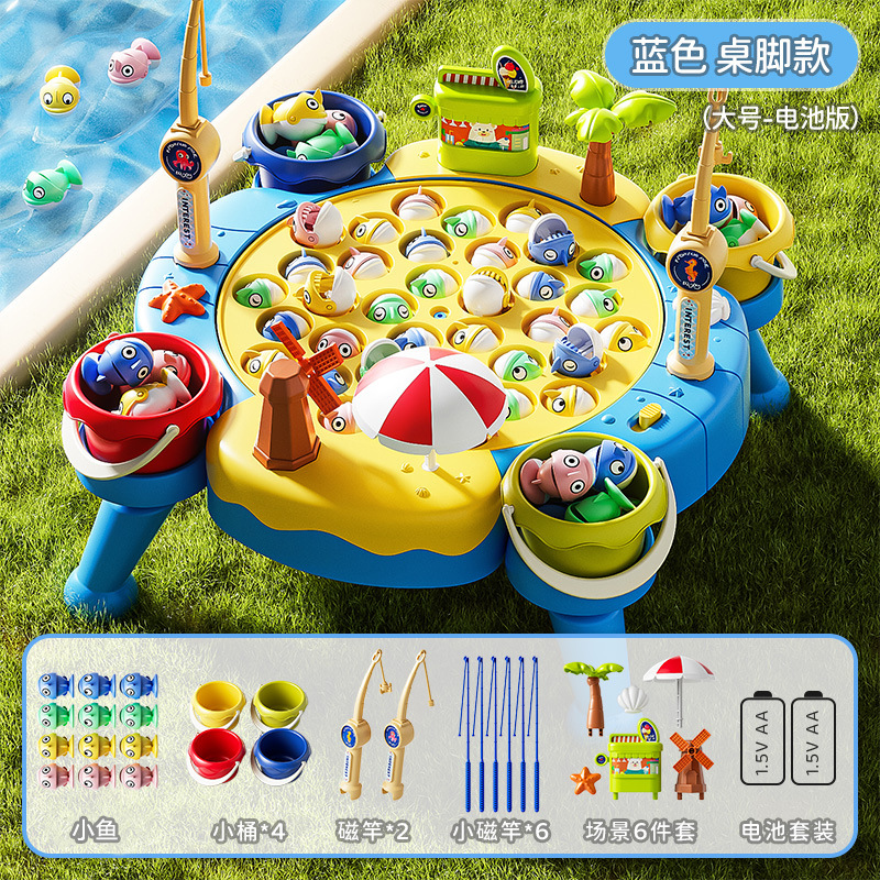 • [테이블 다리 모델 - 대형 - 파란색] 자석 [물고기 35마리 + 막대 8개 + 물통 4개 + 장면 6개] 배터리 버전