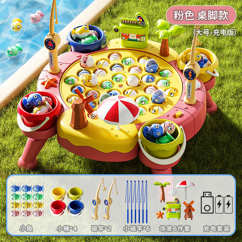 • [테이블다리 모델-대형-핑크] 자석 [물고기 35마리 + 막대 8개 + 물통 4개 + 장면 6개] 충전식 버전