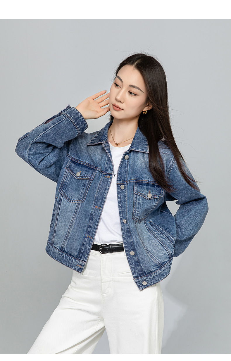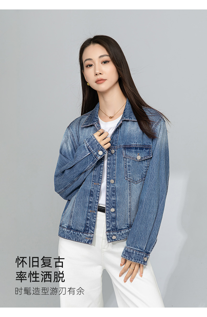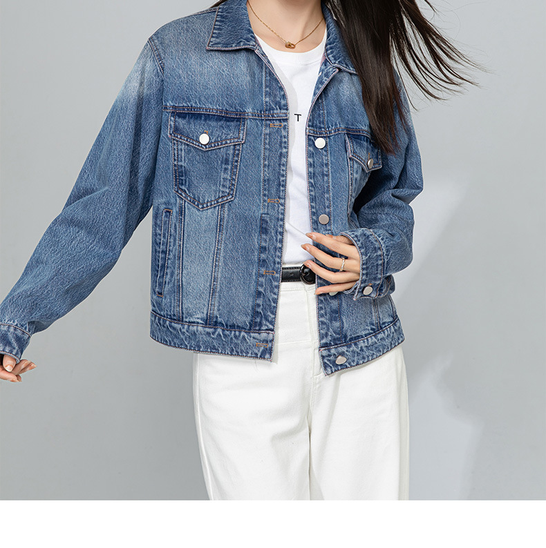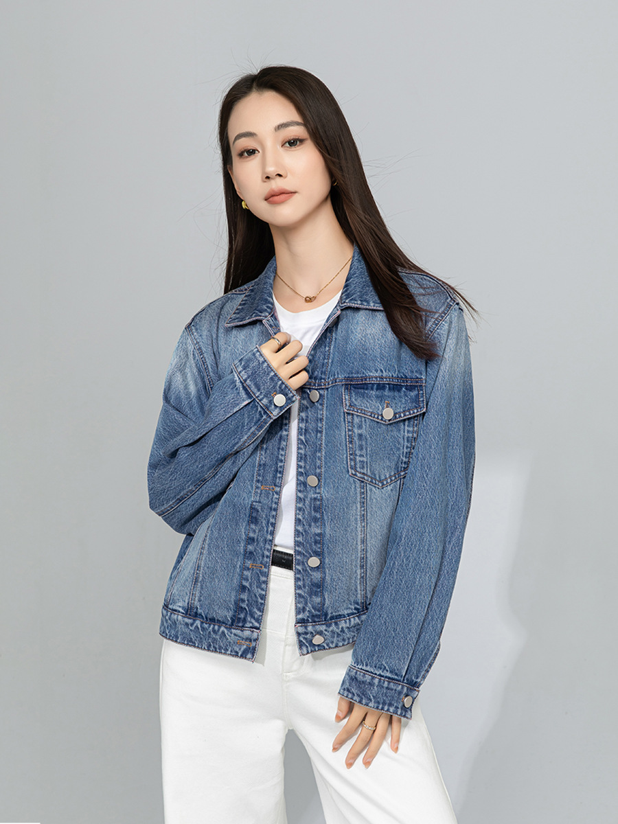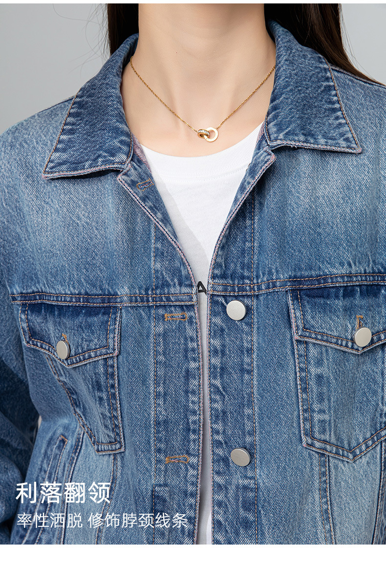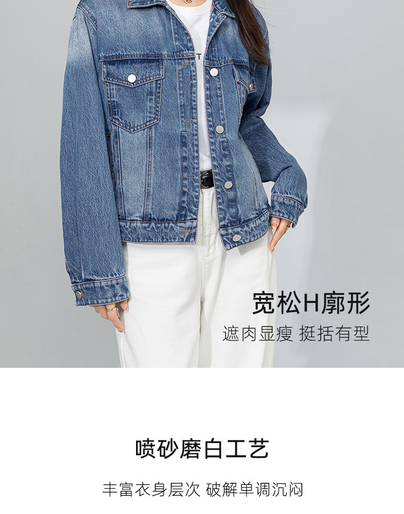 그라디언트 데님 재킷 여성의 짧은 긴 소매 2025 봄과 가을 새로운 느슨한 재킷 데님 옷 플러스 사이즈 트렌디스토어 가기