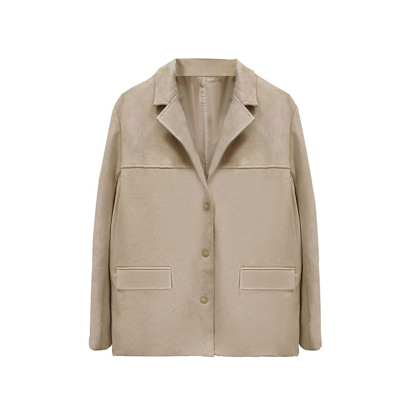 국경 2024 가을과 겨울 새로운 유럽과 미국 여성의 우아한 복고풍 다크 브라운 느슨한 포켓 긴팔 세트 재킷스토어 가기