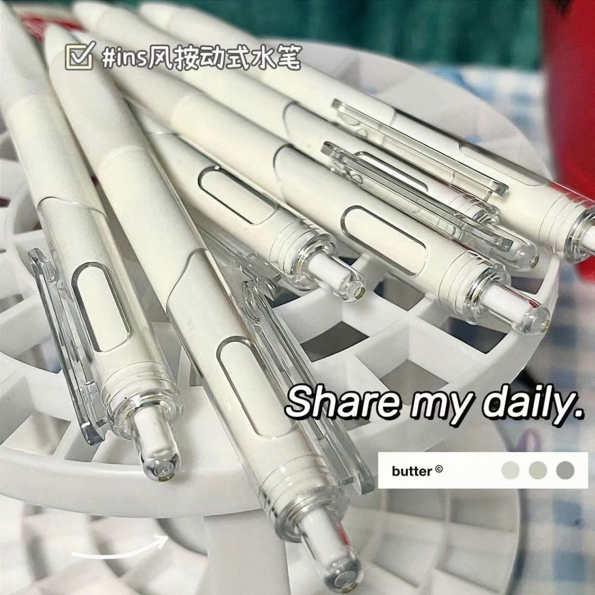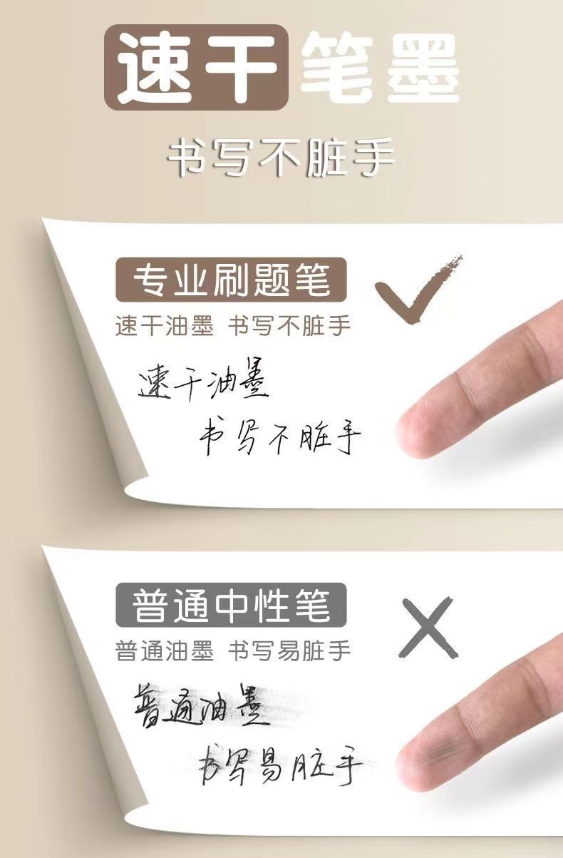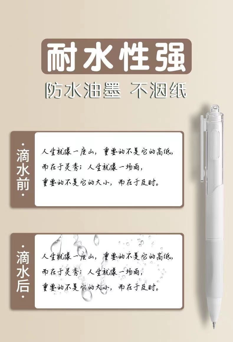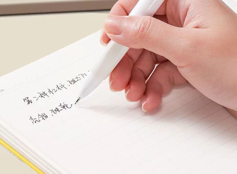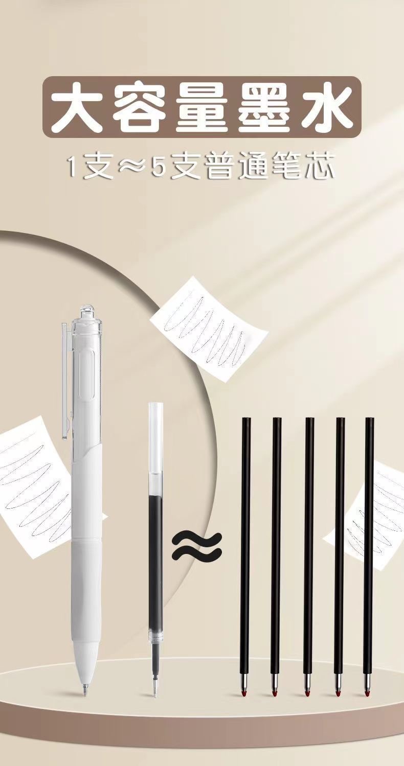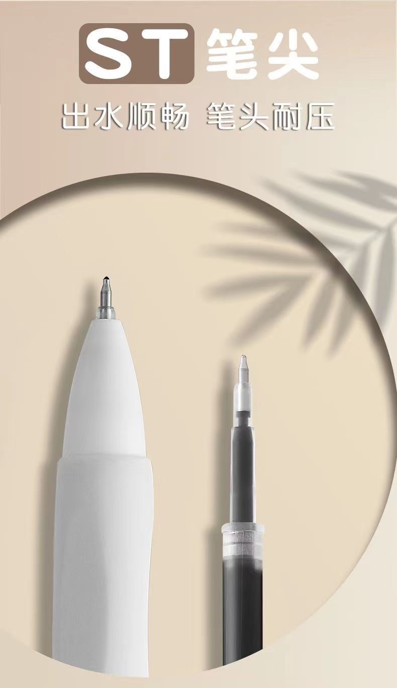 注意:中性笔墨水易蒸发。如长时间不使用应加盖笔套,以免下次书写不流畅。