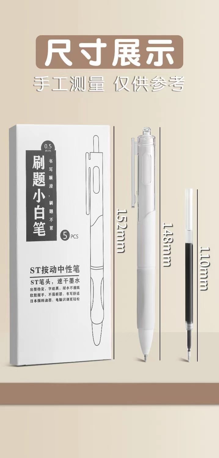 작은 흰색 펜 Morandi 컬러 st 학생 시험 젤 펜 빠른 드라이 브러시 펜 블랙 볼 펜을 누르십시오.