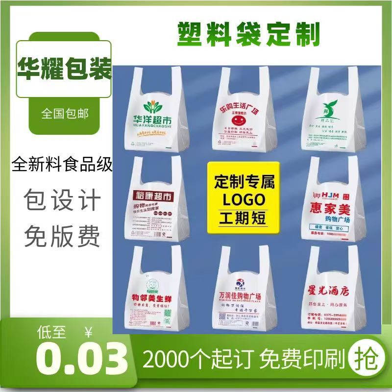 비닐 봉투 사용자 정의 인쇄 로고 슈퍼마켓 쇼핑백 과일 가방 테이크 아웃 포장 가방 새로운 재료 식품 등급 두꺼운