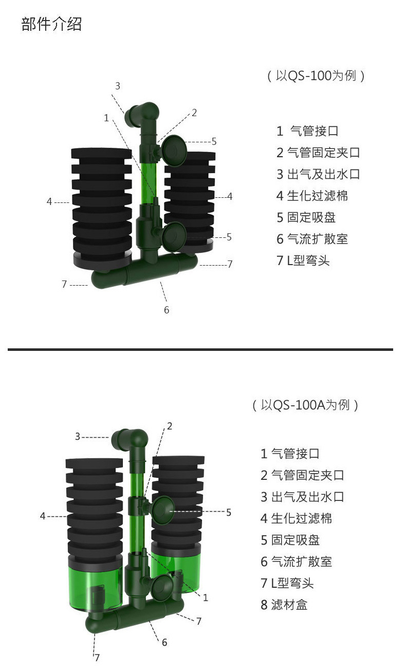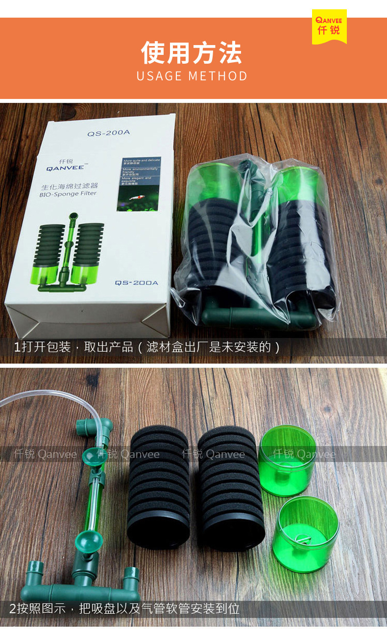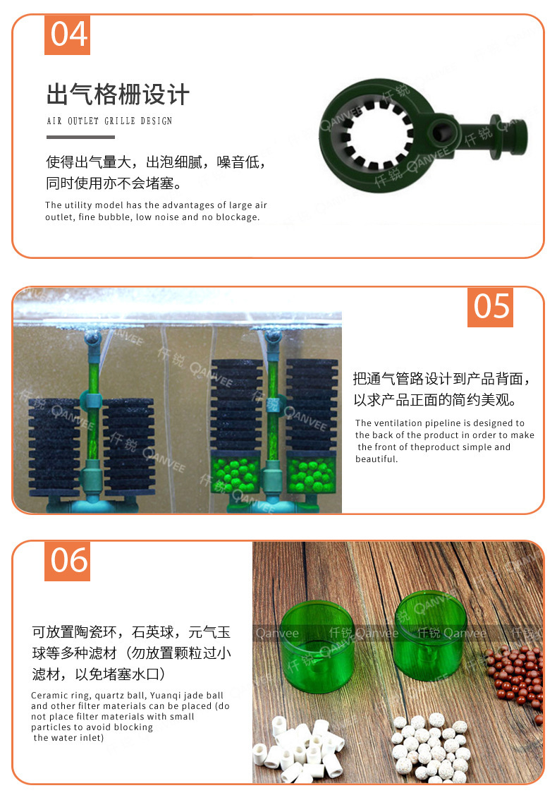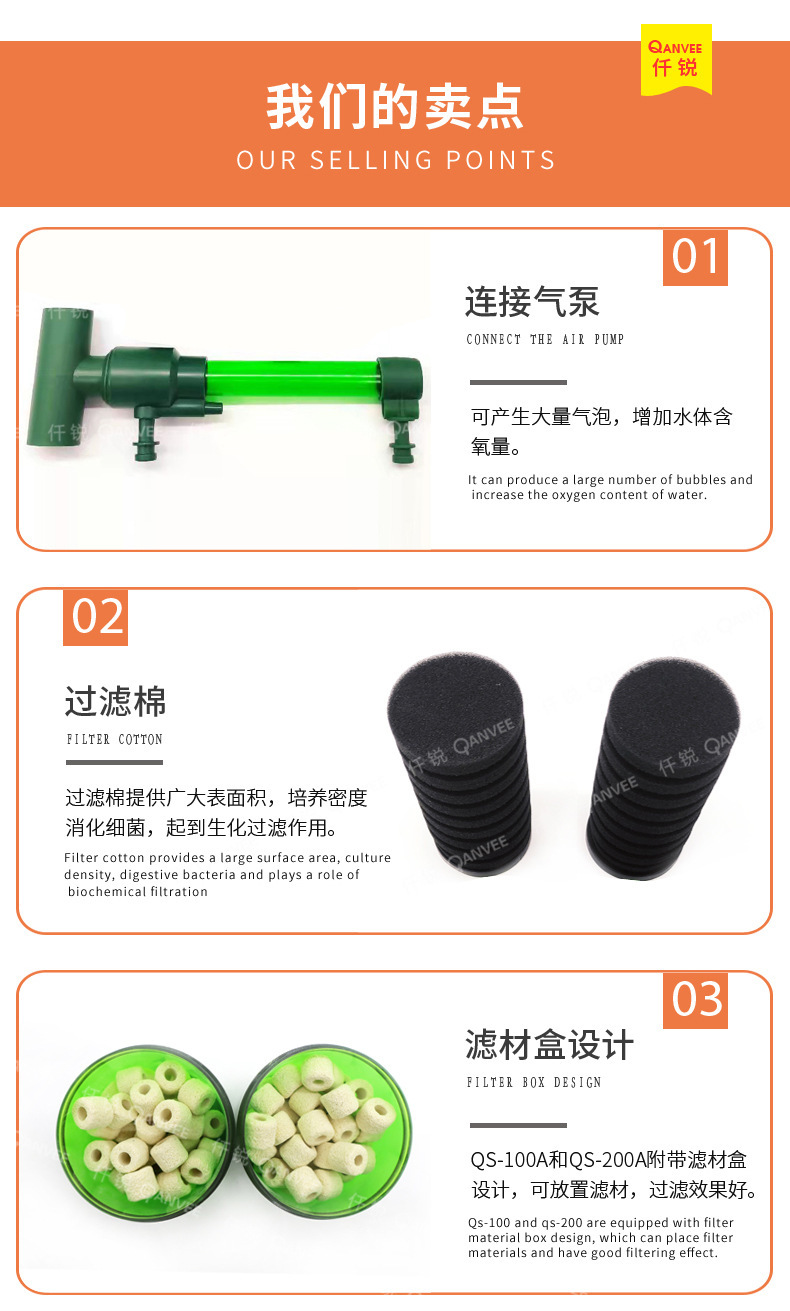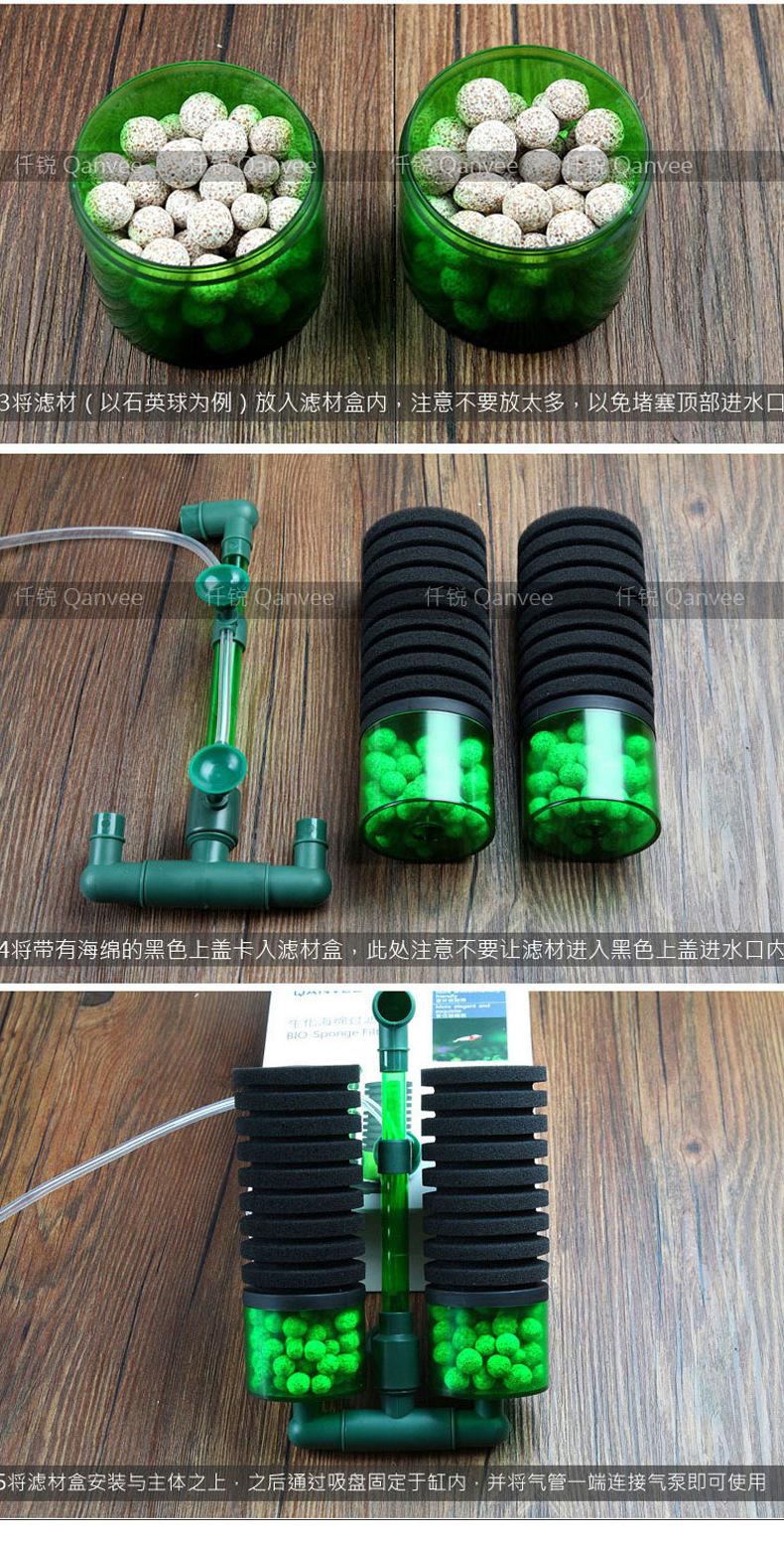 Qianrui 공압 물 고블린 공압 양두 소형 어항 필터 안티 에어 리프트 산소 펌프 3 대 1 흡입 화장실스토어 가기