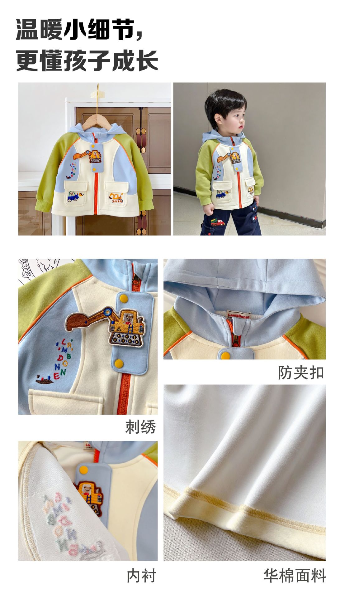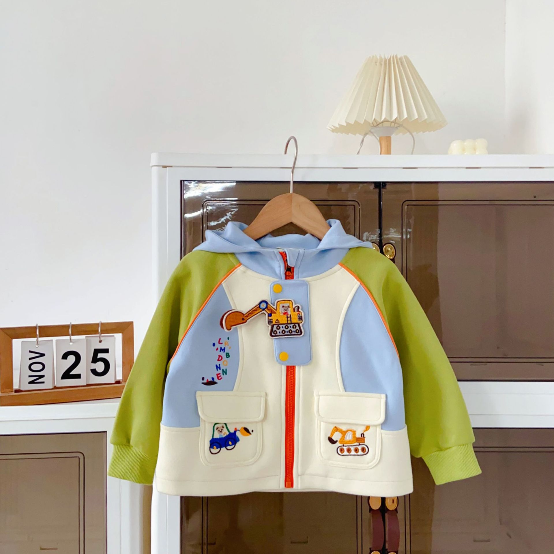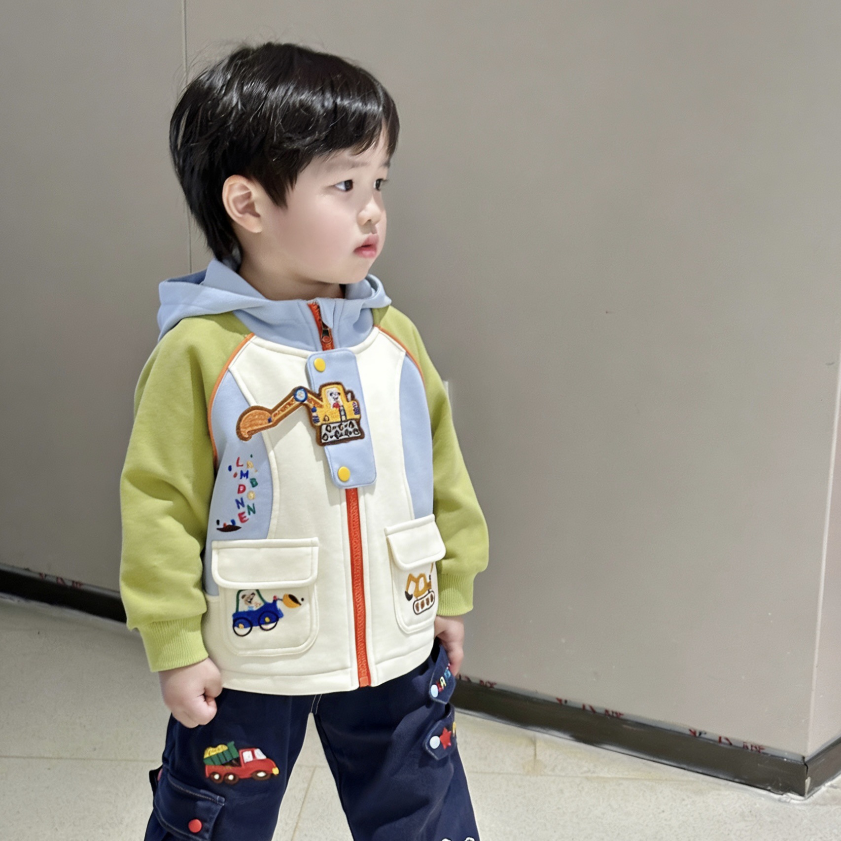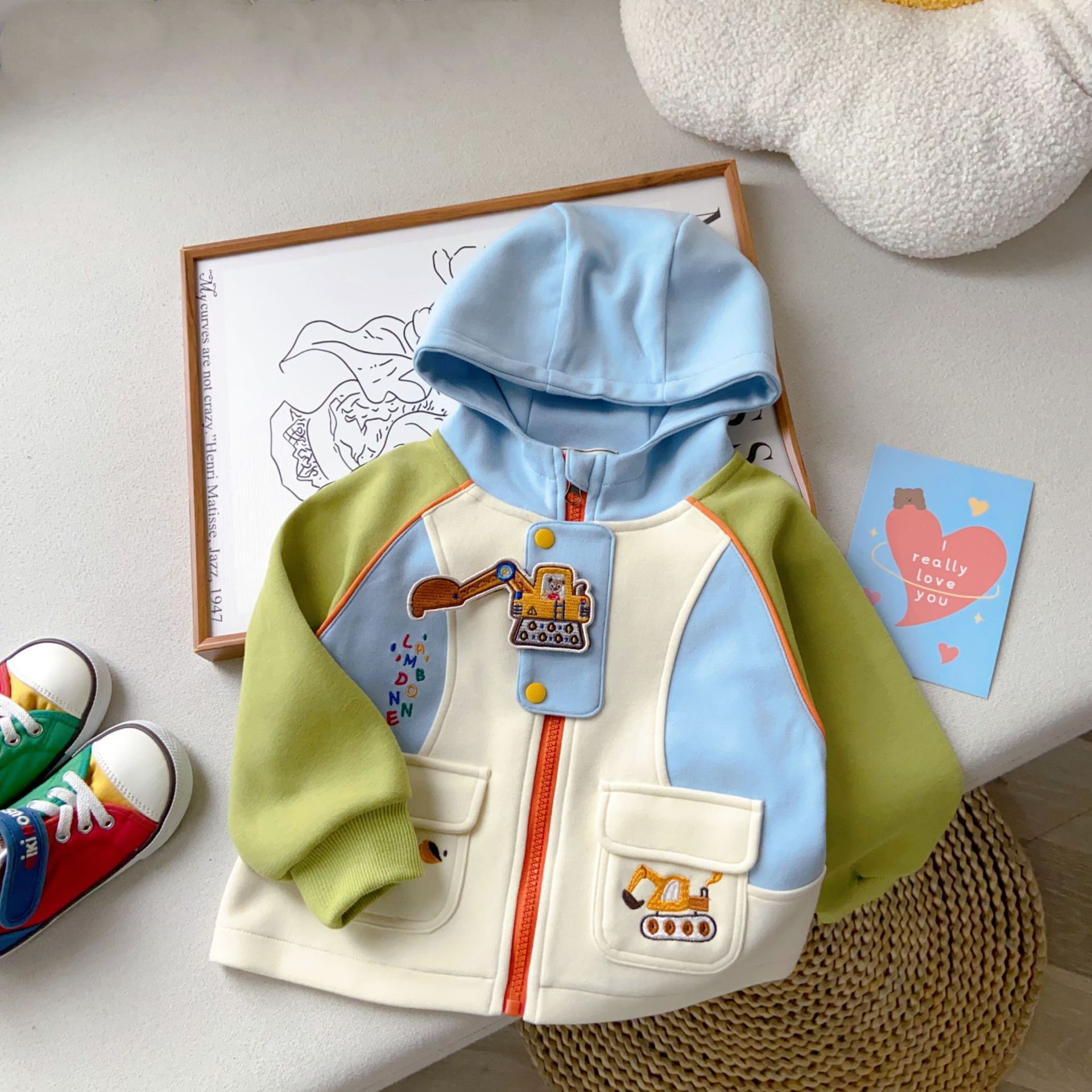 어린이 재킷 2026년 봄 신상품, 중소 어린이 봄옷 재킷, 만화 자수 후드 남아 재킷