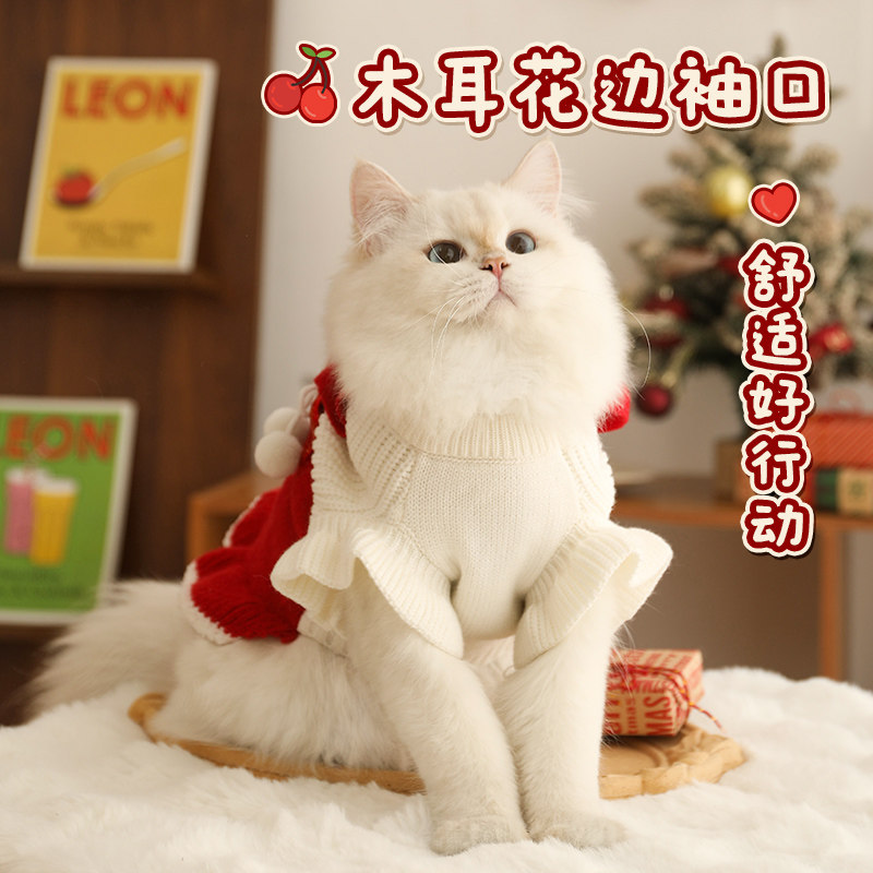 고양이 옷 고양이 꼭두각시 가을과 겨울 독일 크리스마스 스웨터 애완 동물 겨울 고양이 따뜻한 겨울 머리 예방