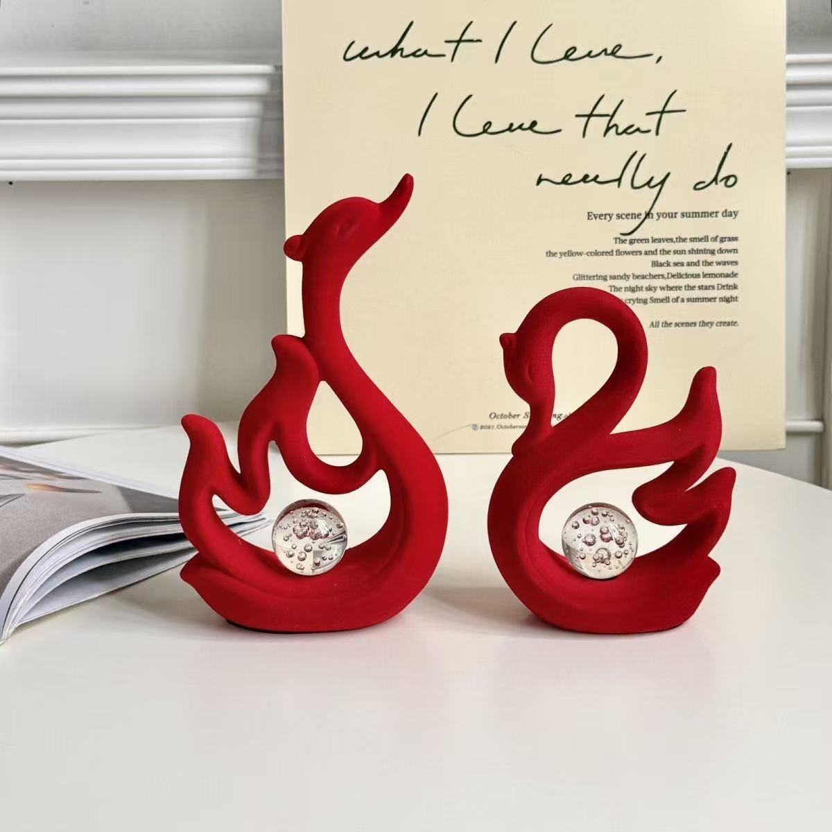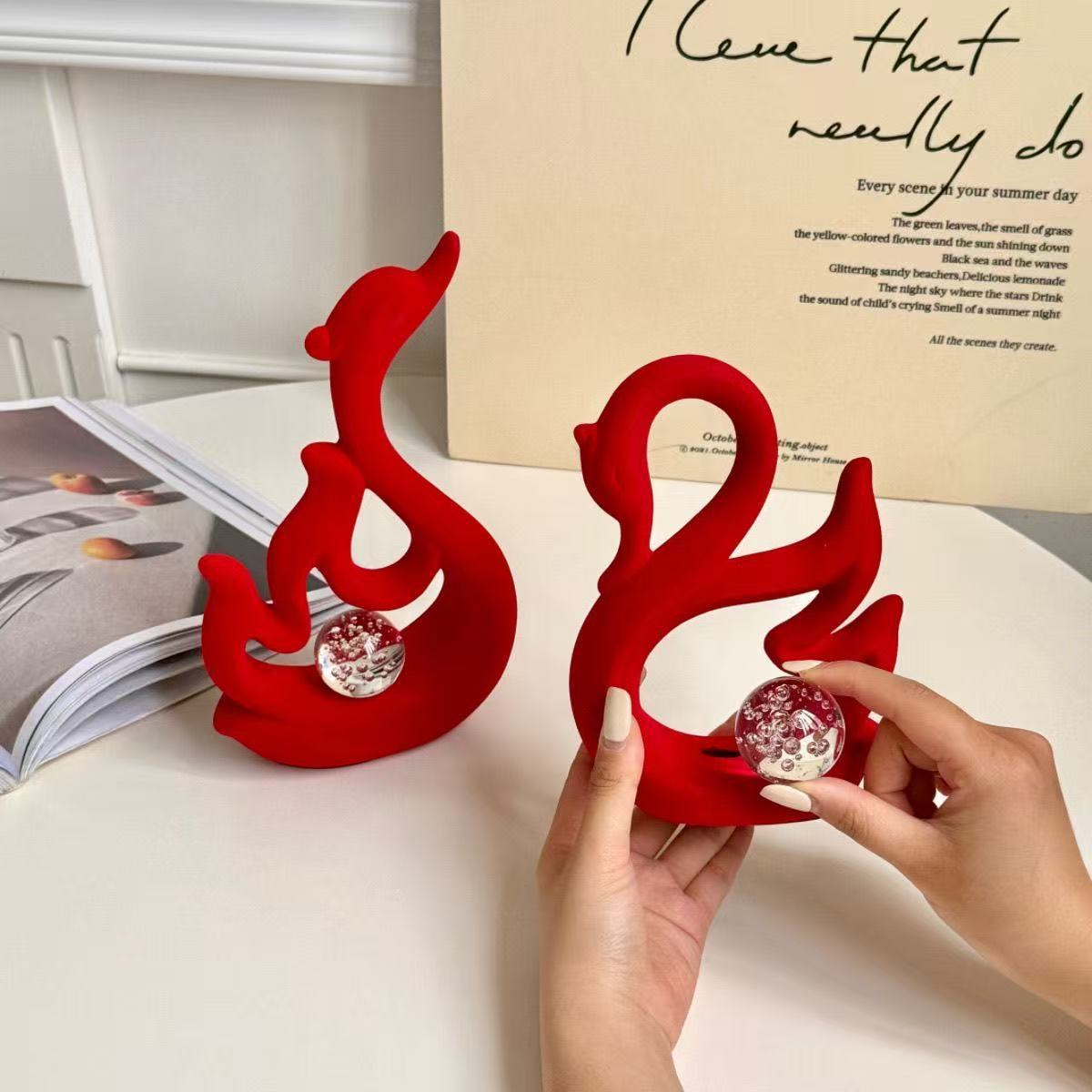 높은 가치의 크리스탈 볼 커플 스완 장식품 현대 빛 럭셔리 홈 입구 거실 와인 캐비닛 TV 캐비닛 장식스토어 가기