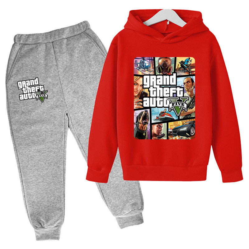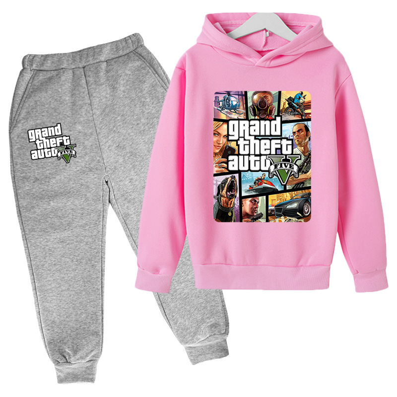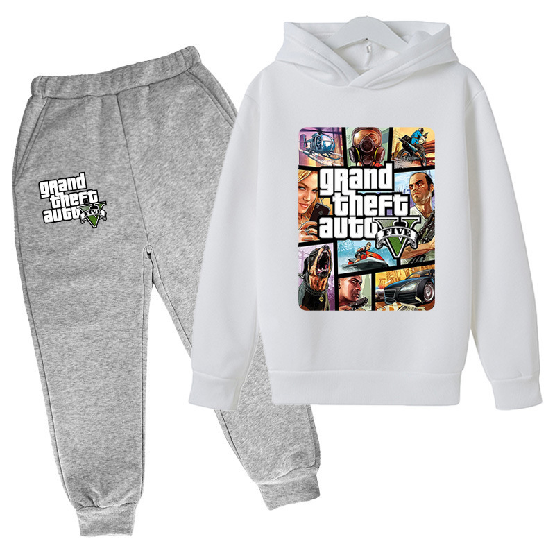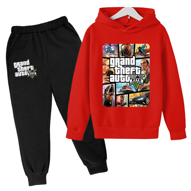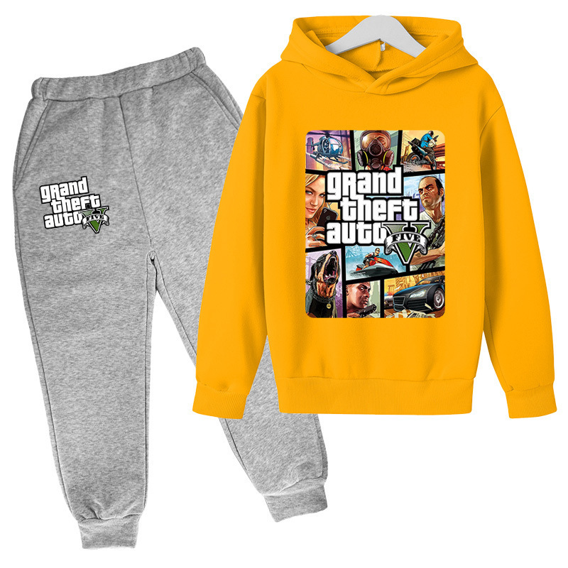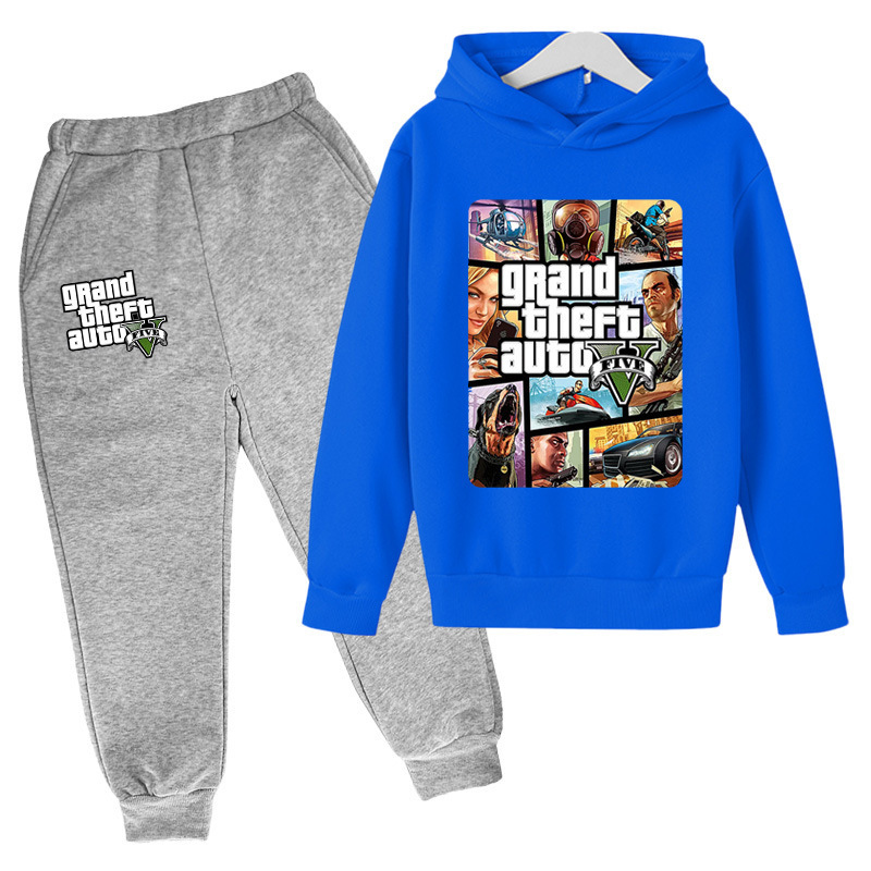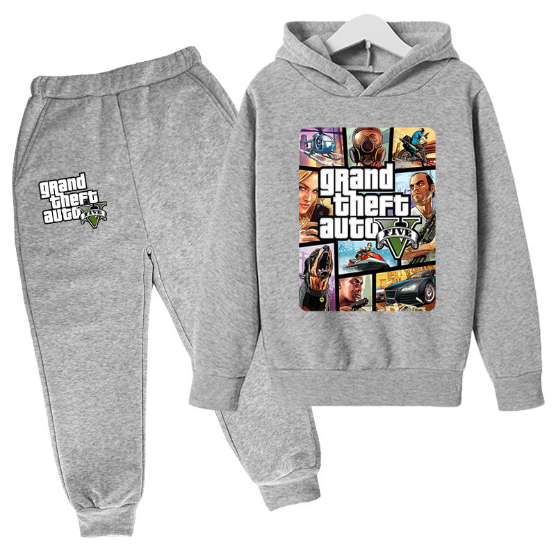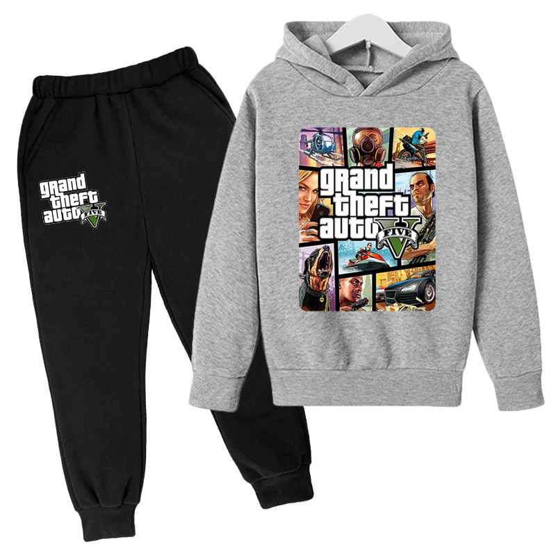 아동복 세트 대외 무역 GTA5 그랜드 절도 자동차 게임 캐주얼 후드 스웨트 재킷 어린이 바지스토어 가기