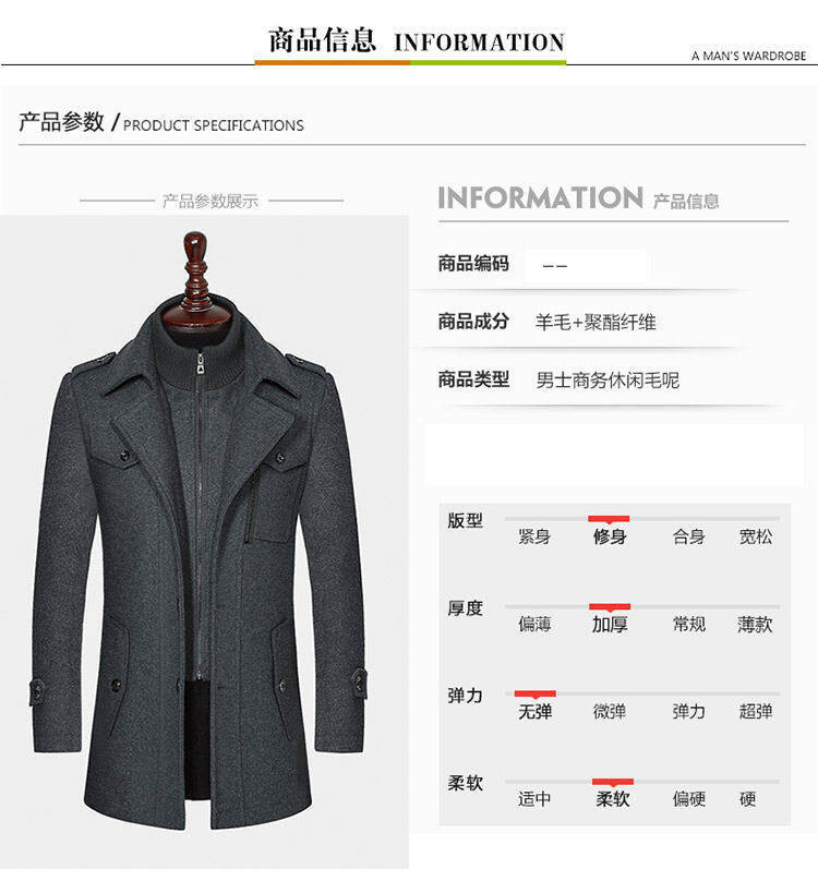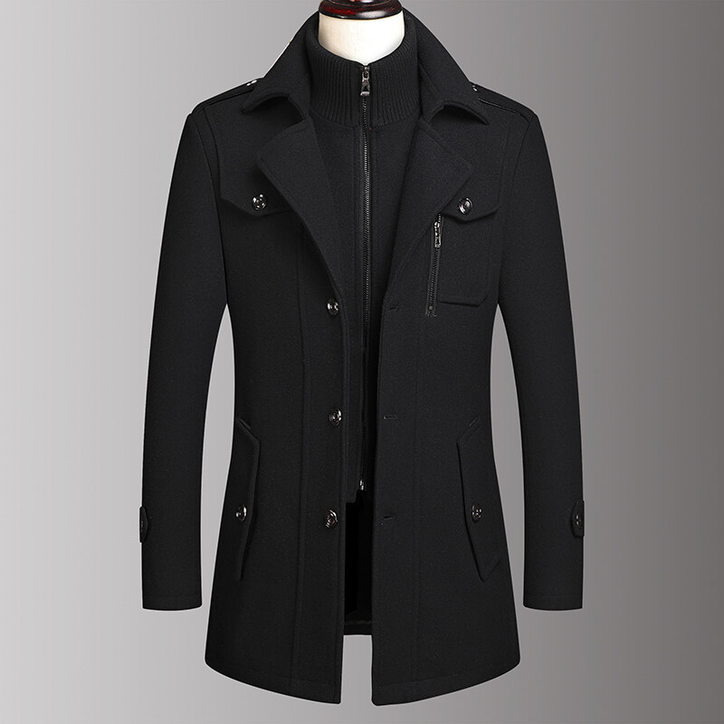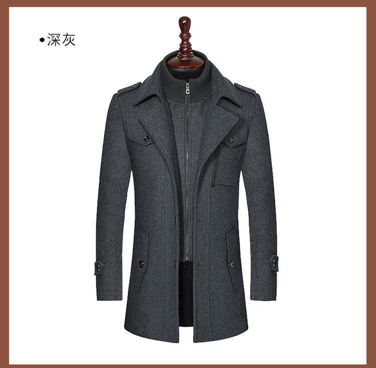 남자 모직 가을과 겨울 코트 젊고 중년 아빠 겨울 코트 재킷 더블 칼라 대외 무역 폭발 캐주얼 모직스토어 가기