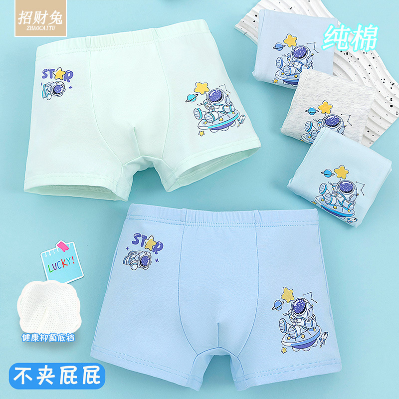 어린이 속옷 남성용 원사 면화 중형 및 대형 어린이 복서 학생 4 코너 만화 항균 속옷 3-12 세 도매스토어 가기