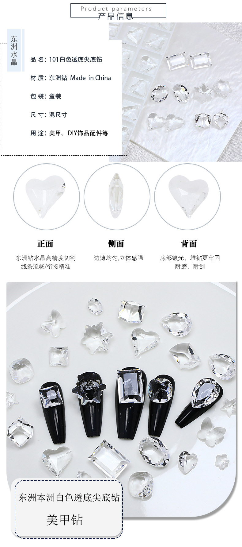동주 크리스탈 투명 화이트 네일 아트 쥬얼리 슈퍼 플래시 투명 화이트 특수 모양의 알몸 다이아몬드 포인팅 네일 아트 드릴