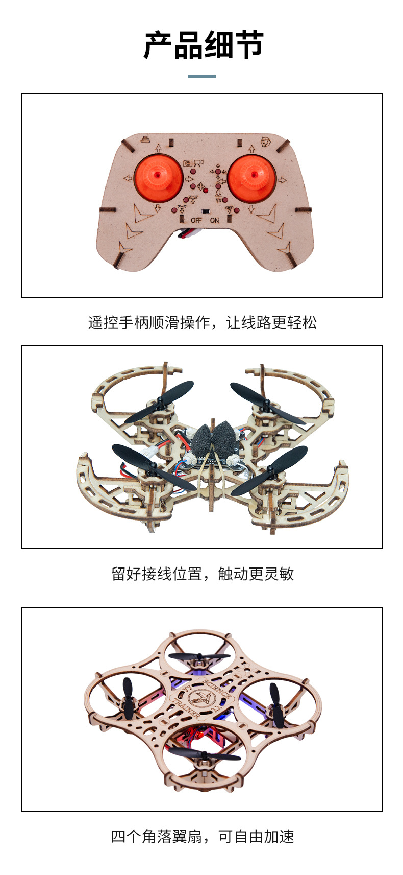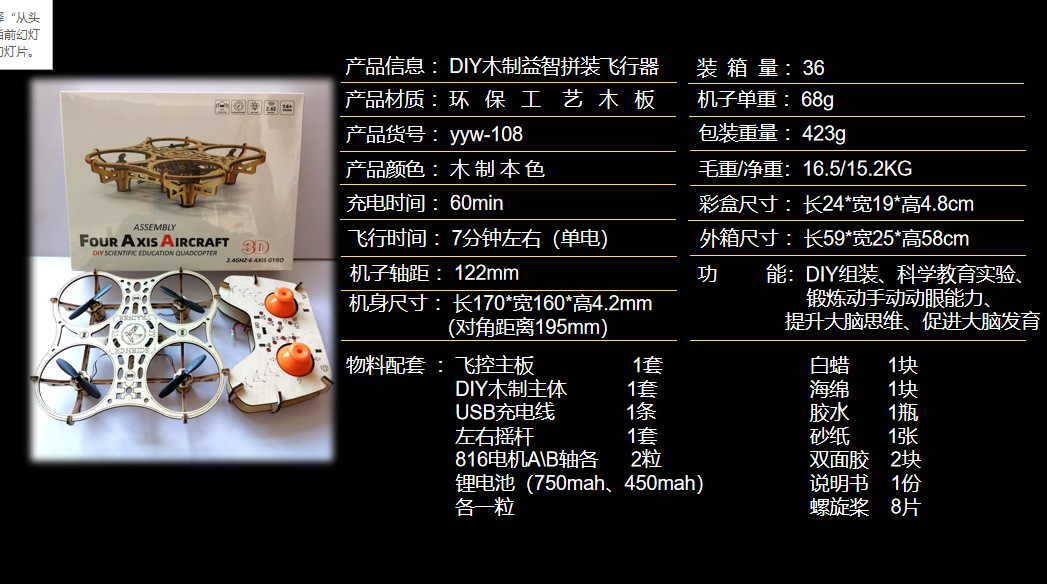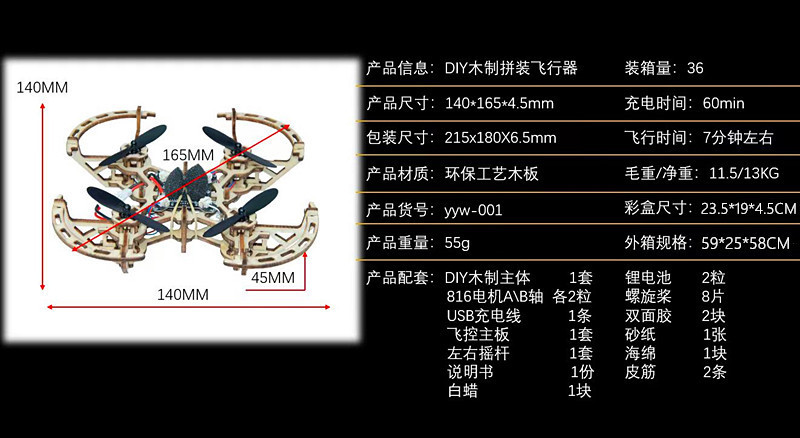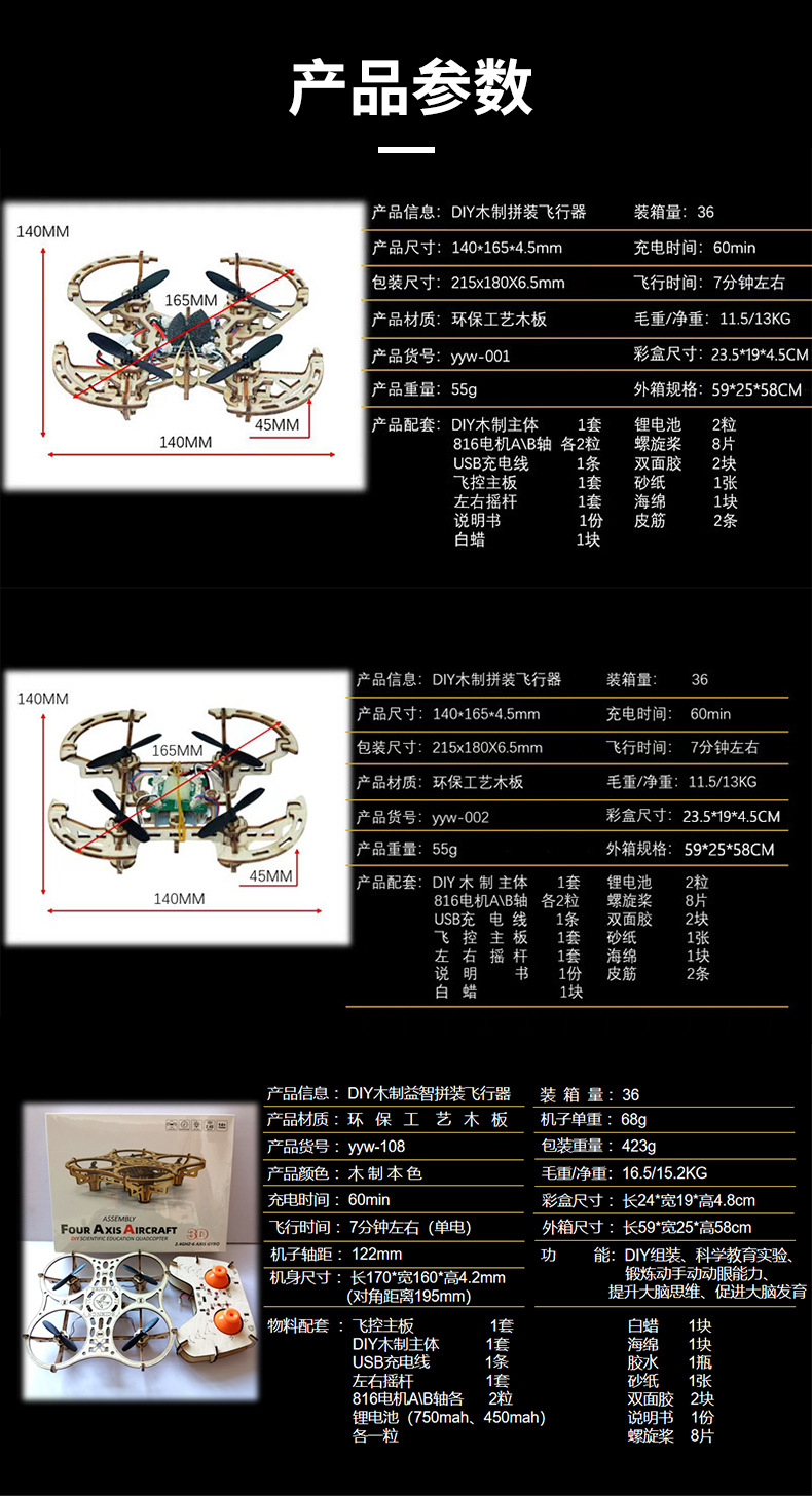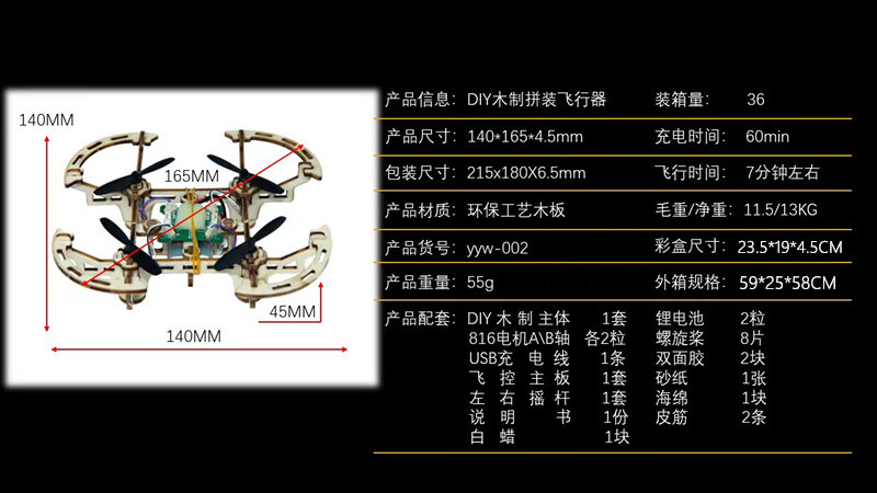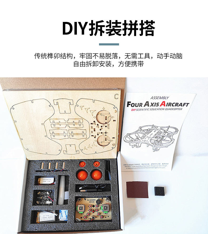 DIY 나무 조립 항공기 UAV 고정 높이 4 축 원격 제어 항공기 모델 교육 및 훈련 장난감 공장