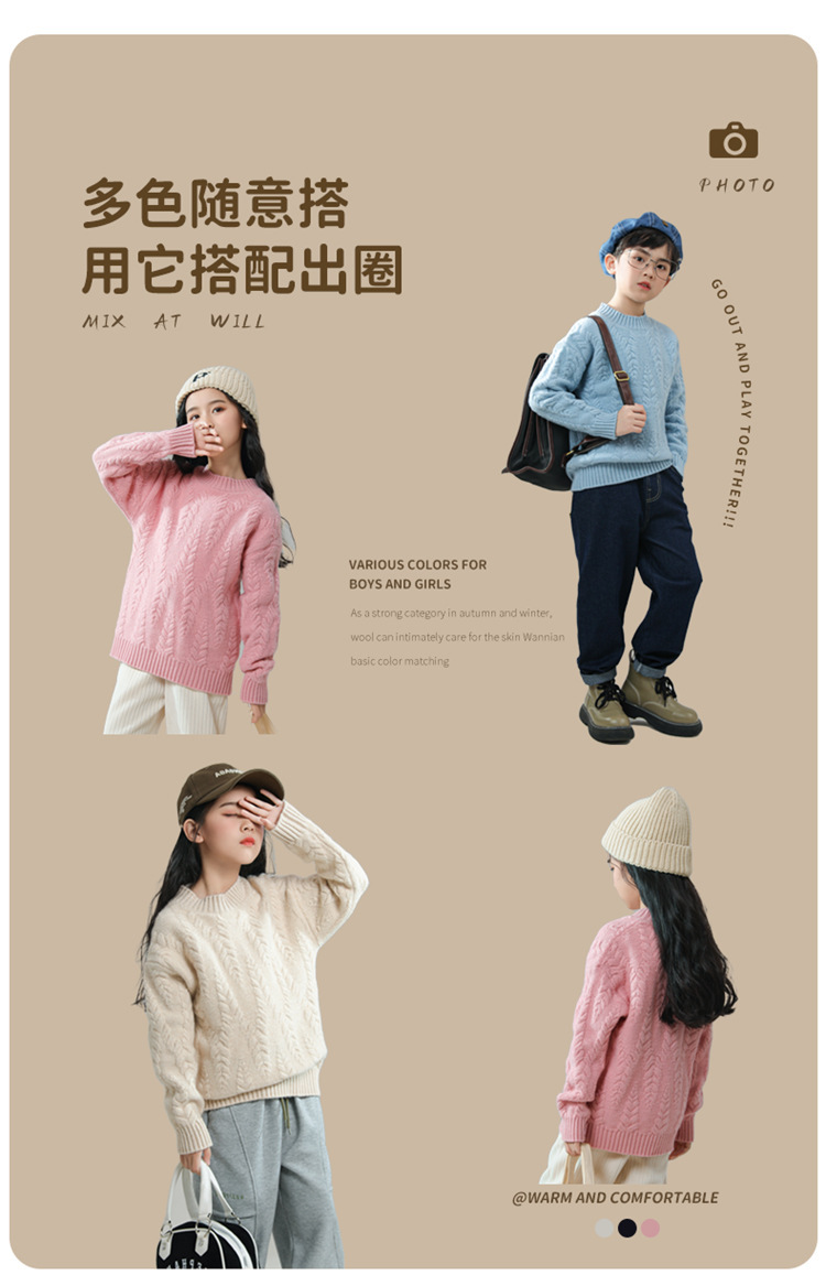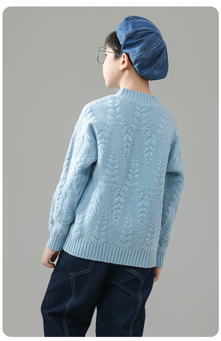 3 가닥 두꺼운 어린이 100 순수 양모 스웨터 크루 넥 풀오버 남성 및 여성 아동복 기질 산업 밀귀베이스 스웨터스토어 가기