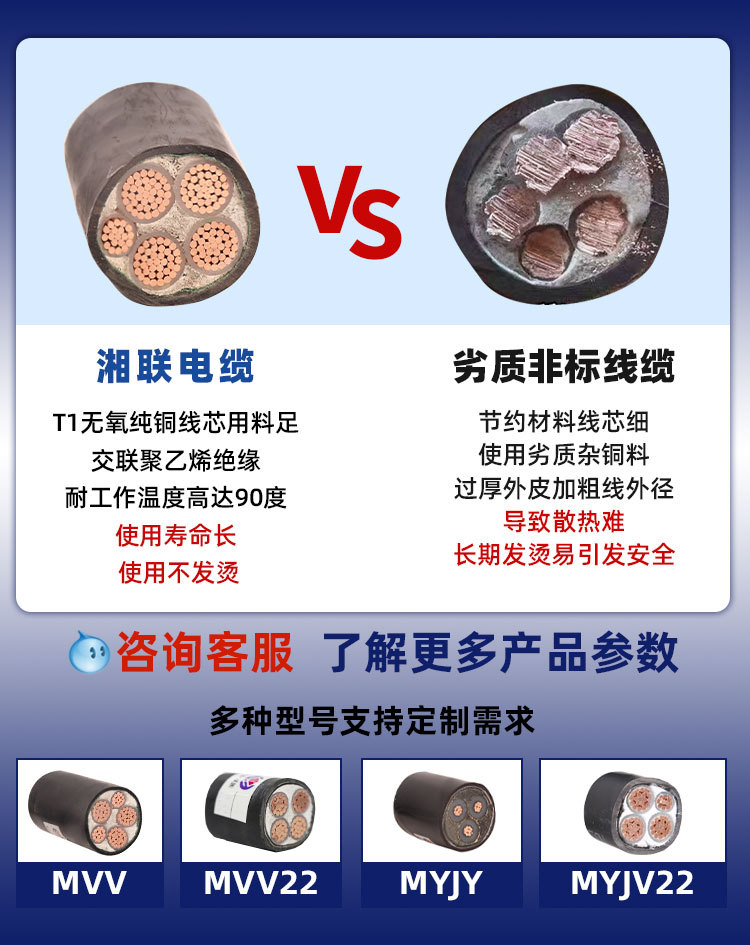 석탄 광산 케이블 석탄 안전 인증서 제조업체 MYJV2 3 4 5 코어 35 50 95 평방 구리 코어 전력 케이블 MVV