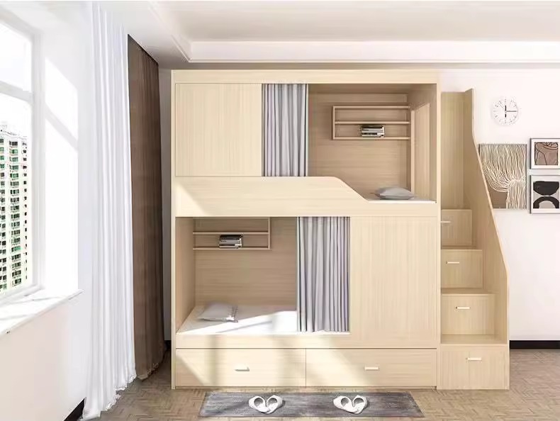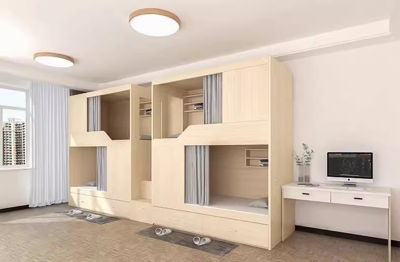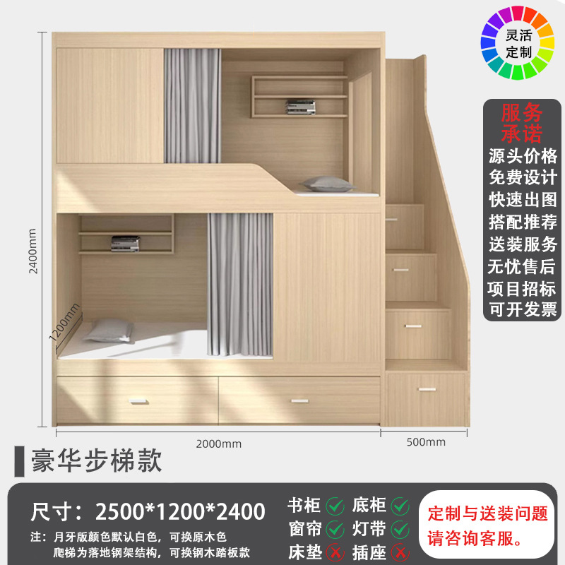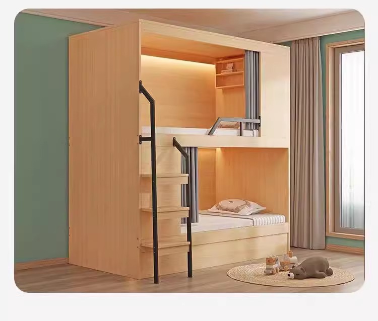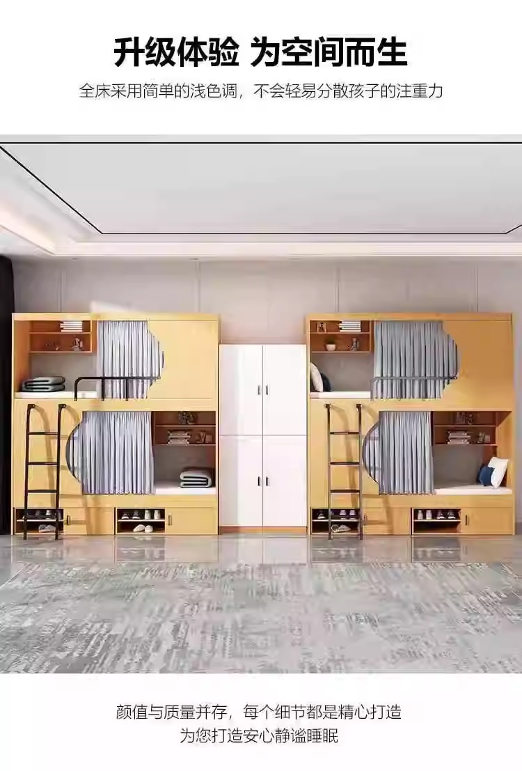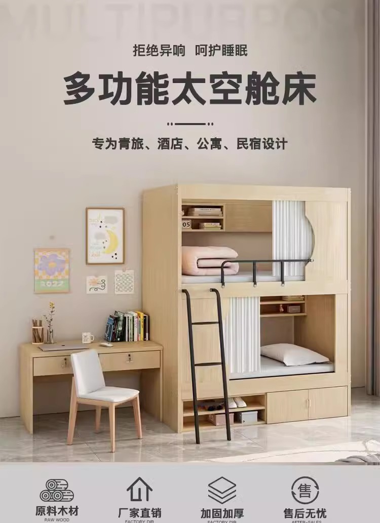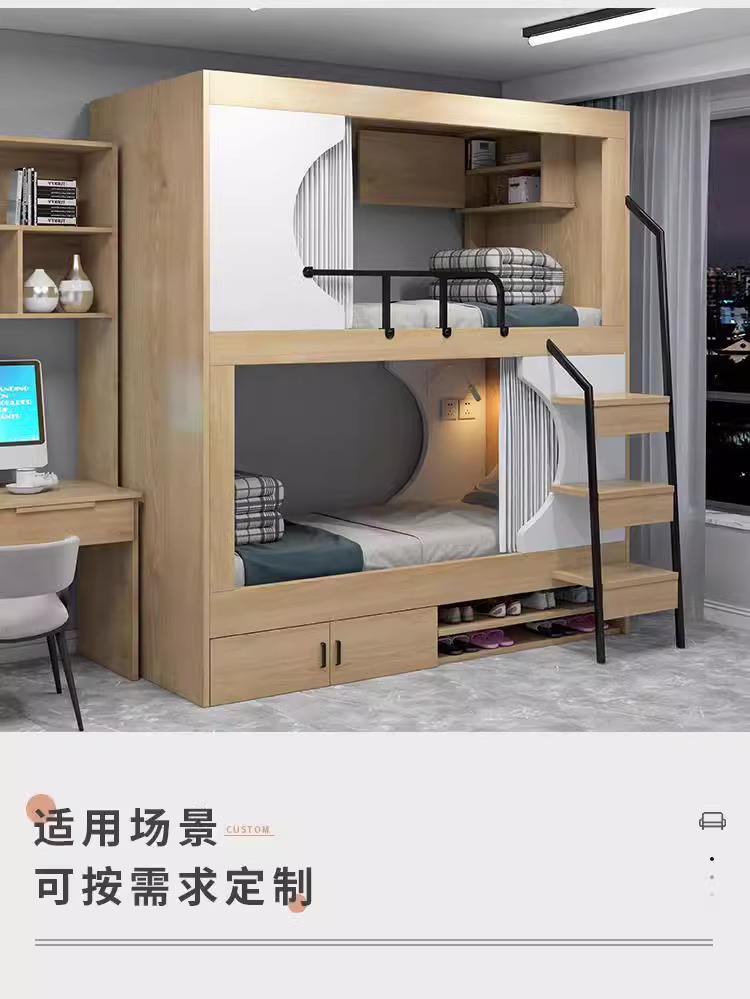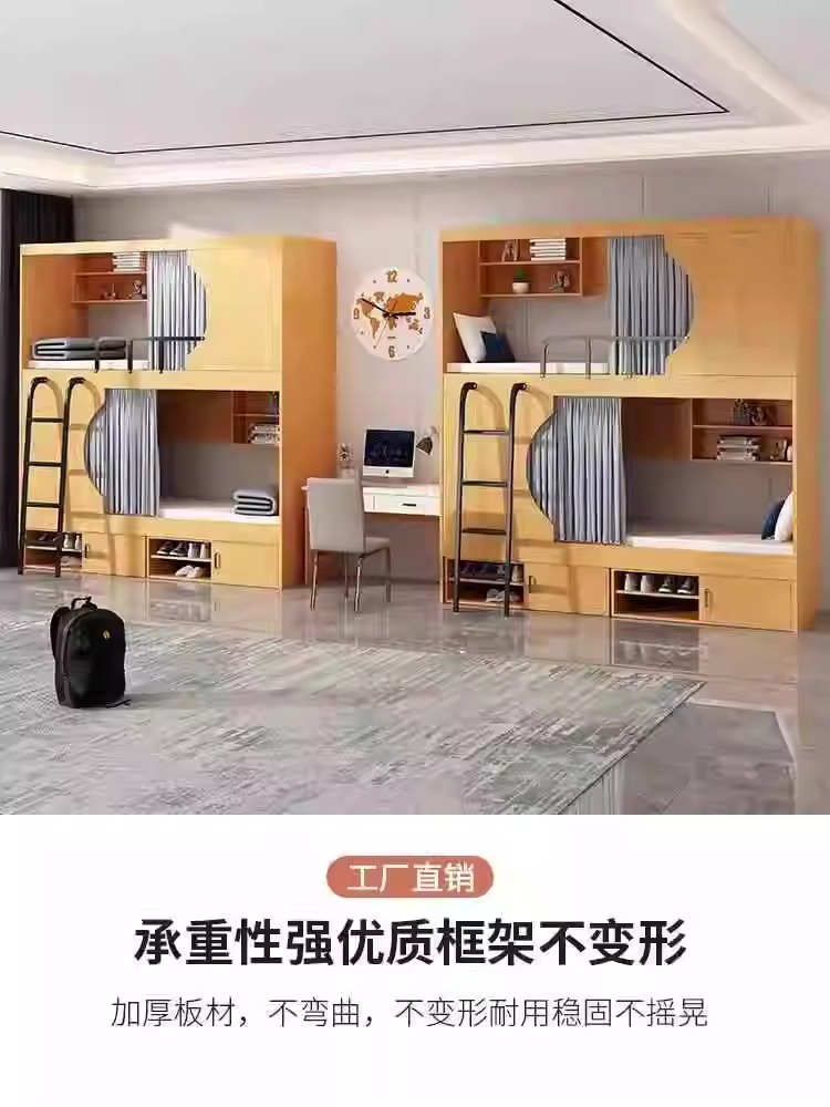 西安学生宿舍员工公寓简约实木太空舱床成人多功能高低上下双层床