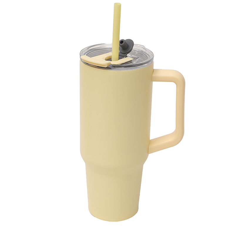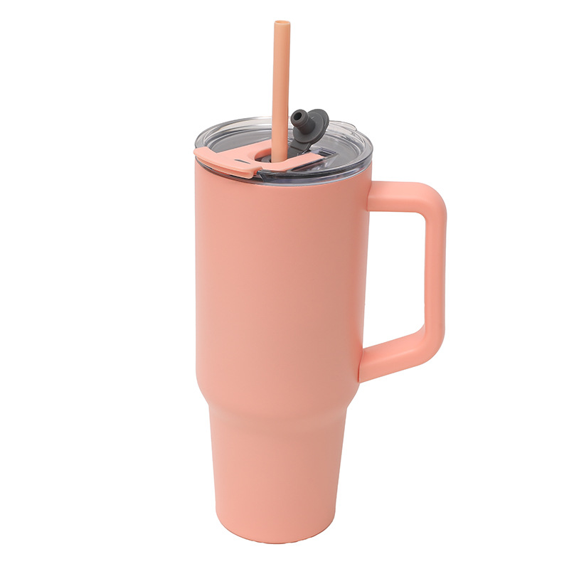 국경 새 공장 직접 공급 스테인레스 스틸 핸들 자동차 컵 더블 음료 대용량 높은 색상 값 편리한 보온병 컵스토어 가기