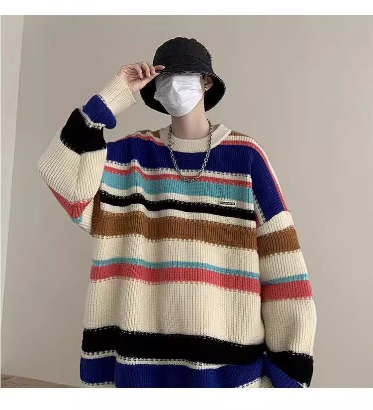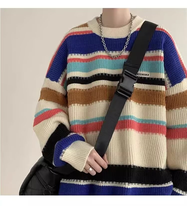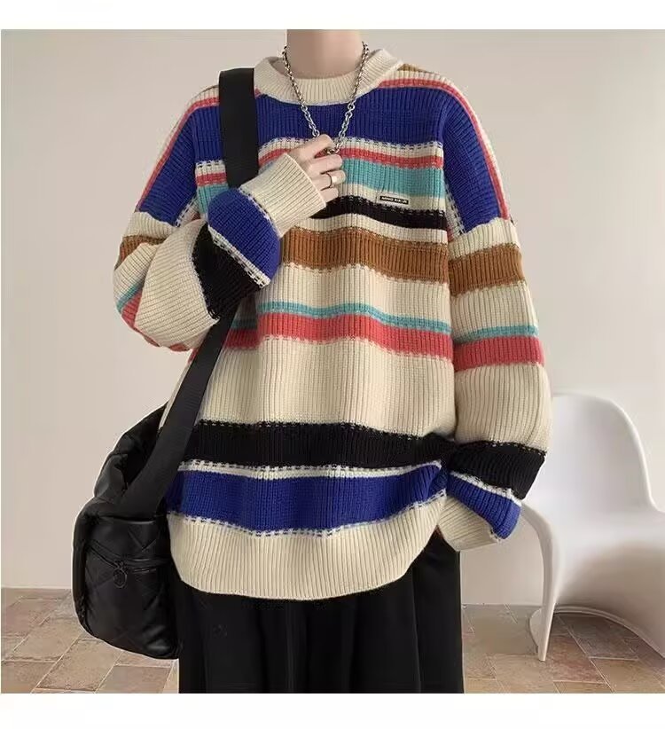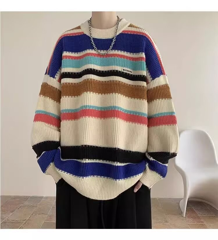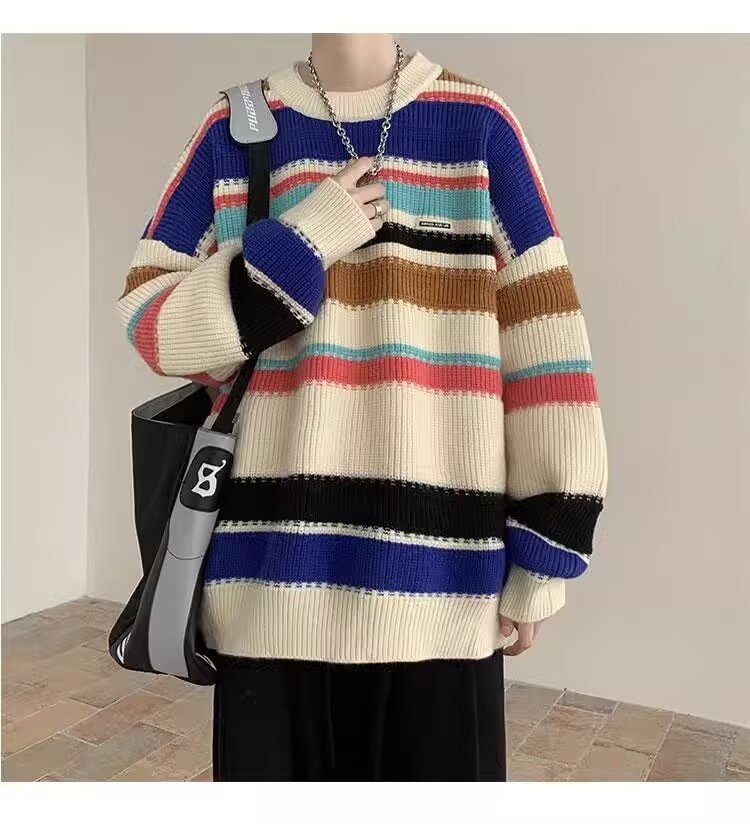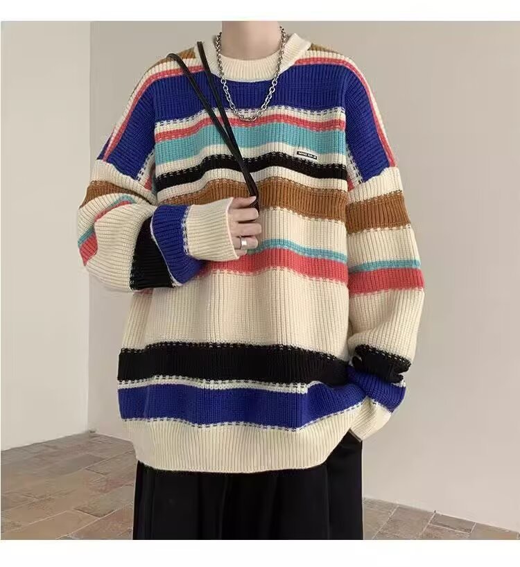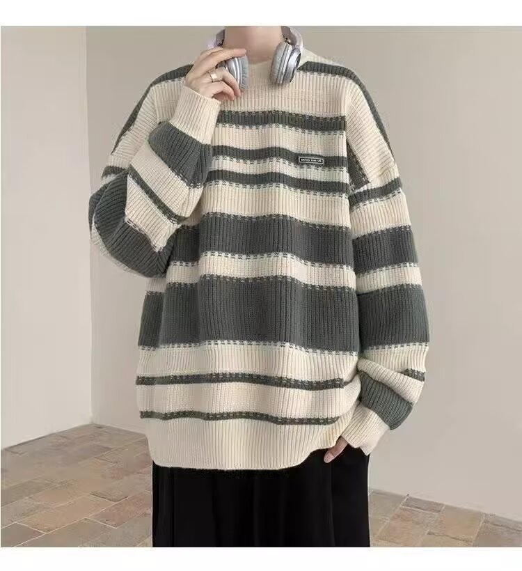 흑백 줄무늬 스웨터 남성 가을, 겨울 새로운 일본 복고풍 게으른 스타일 느슨한 유행 브랜드 캐주얼 스웨터 재킷스토어 가기