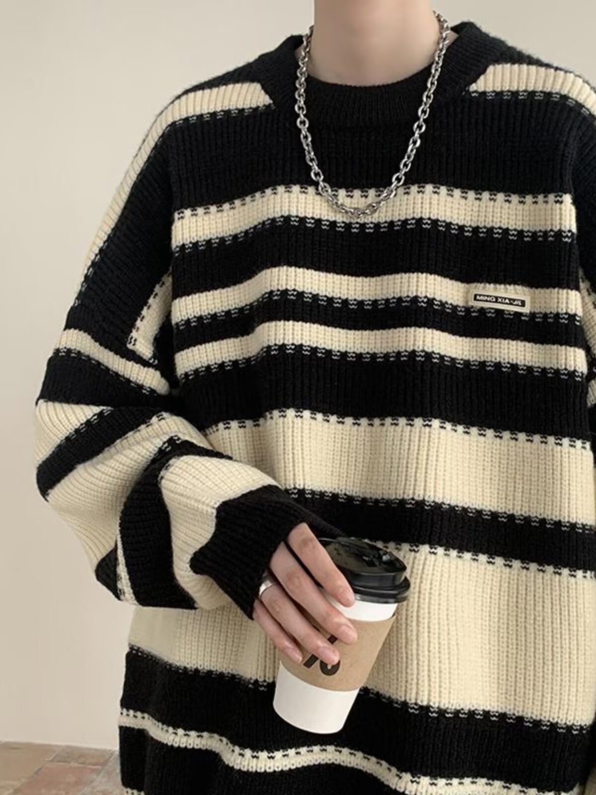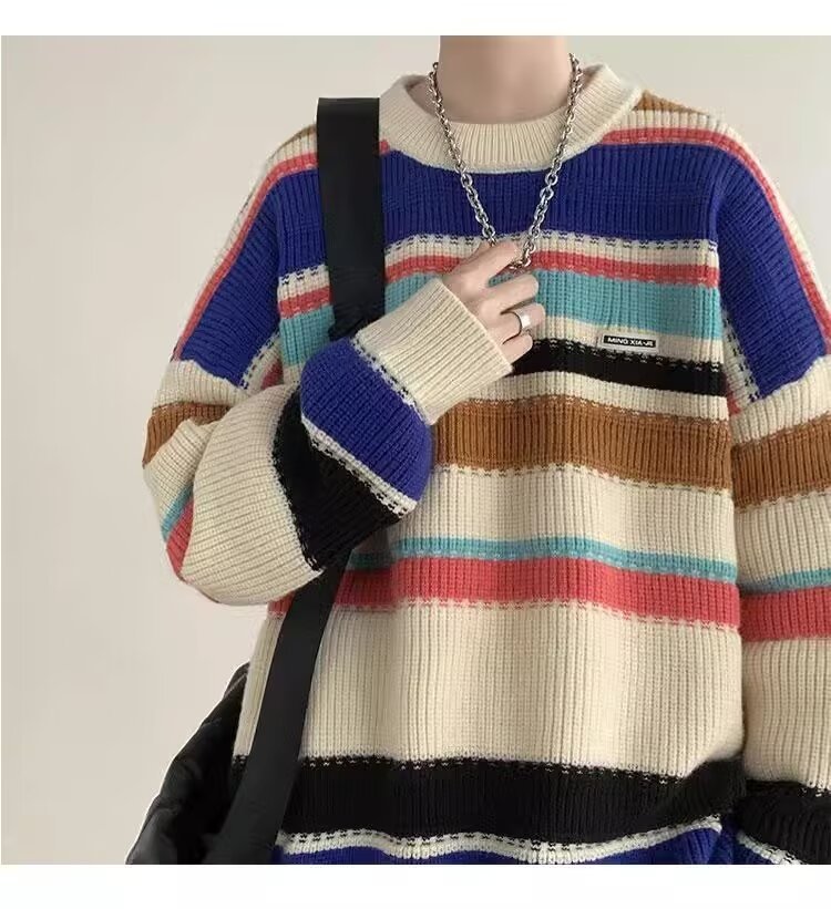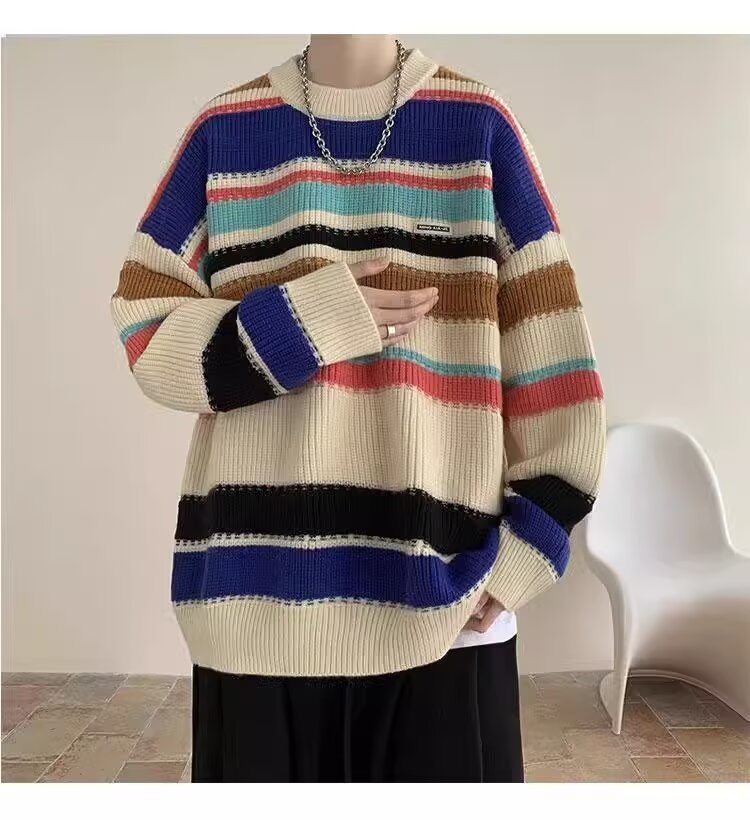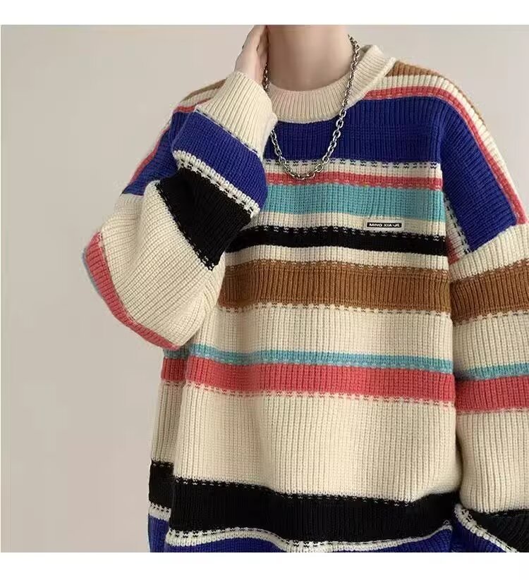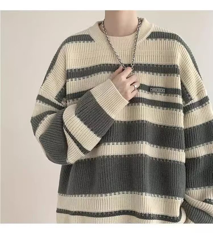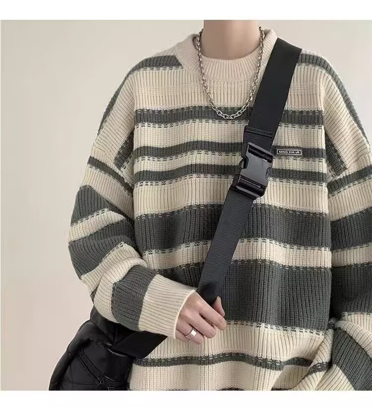 흑백 줄무늬 스웨터 남성 가을, 겨울 새로운 일본 복고풍 게으른 스타일 느슨한 유행 브랜드 캐주얼 스웨터 재킷
