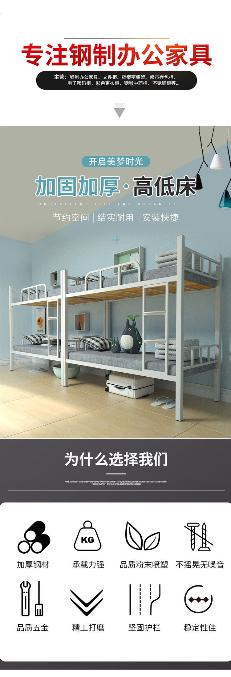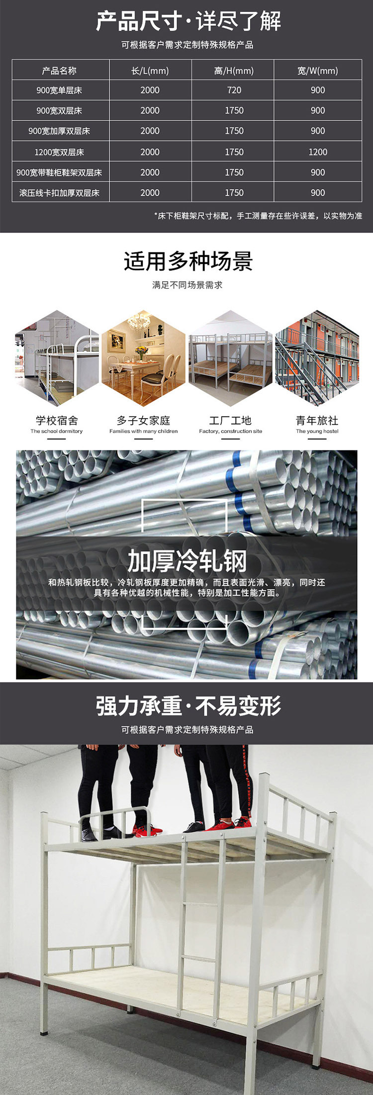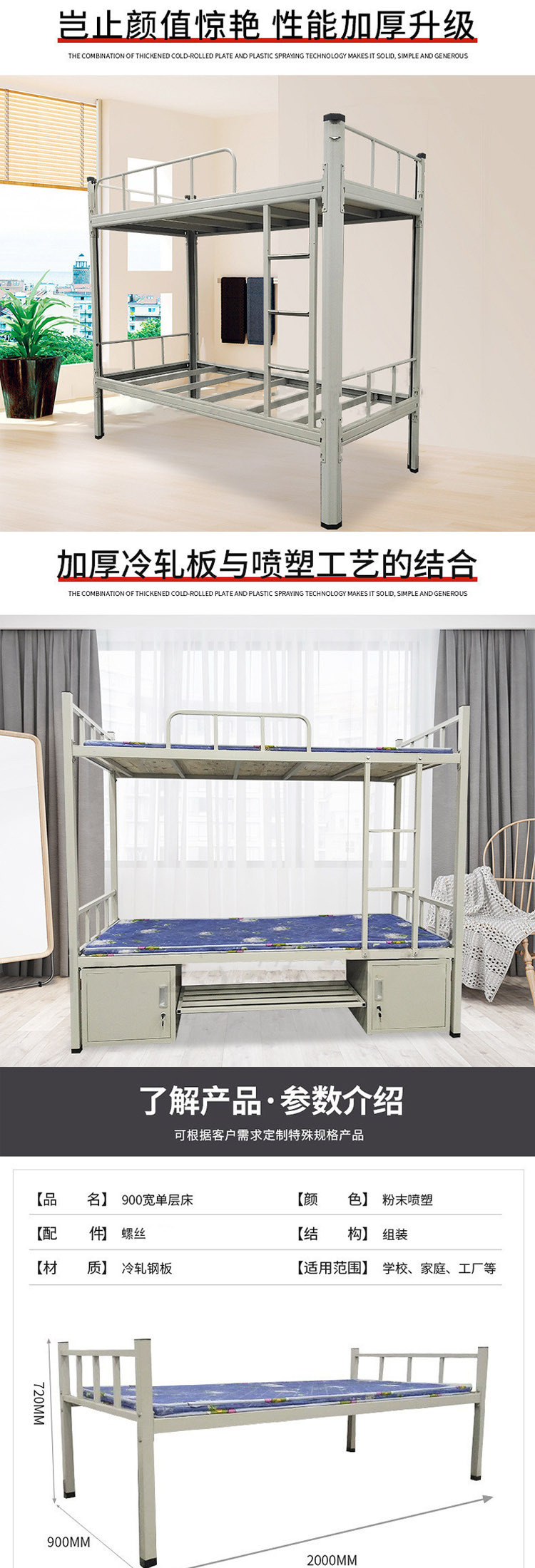 맞춤형 학교 2층 기숙사 철제 프레임 침대 학생 이층 침대 기숙사 침대 철제 아파트 직원 하이 및 로우 랙 공장