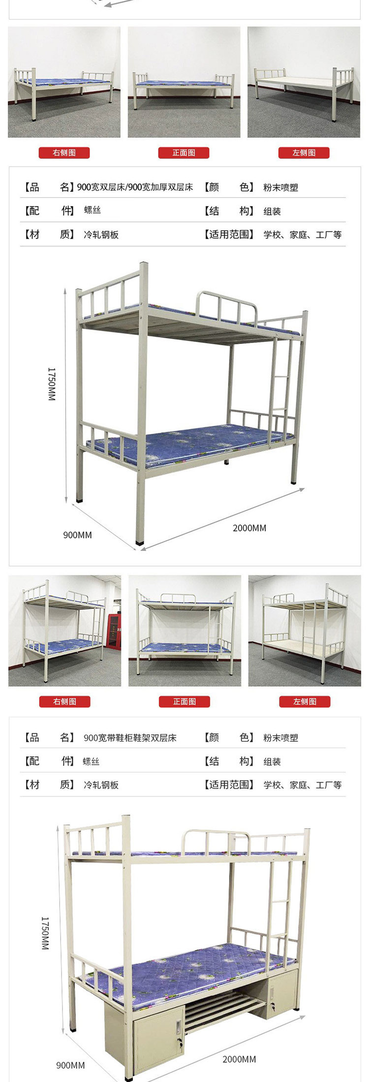 맞춤형 학교 2층 기숙사 철제 프레임 침대 학생 이층 침대 기숙사 침대 철제 아파트 직원 하이 및 로우 랙 공장스토어 가기