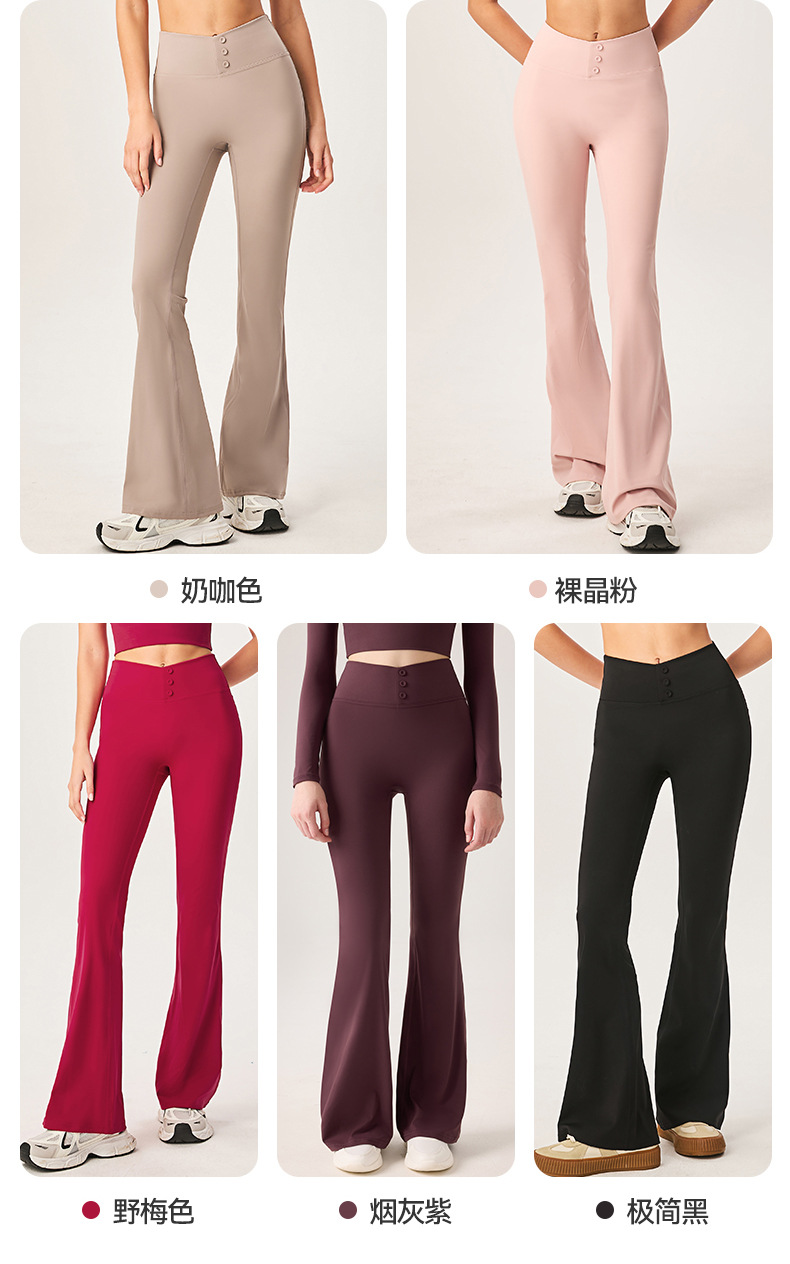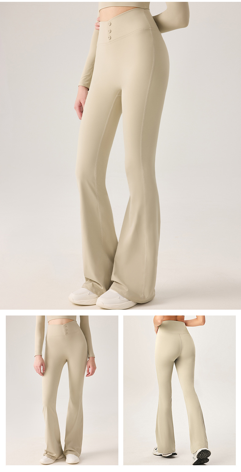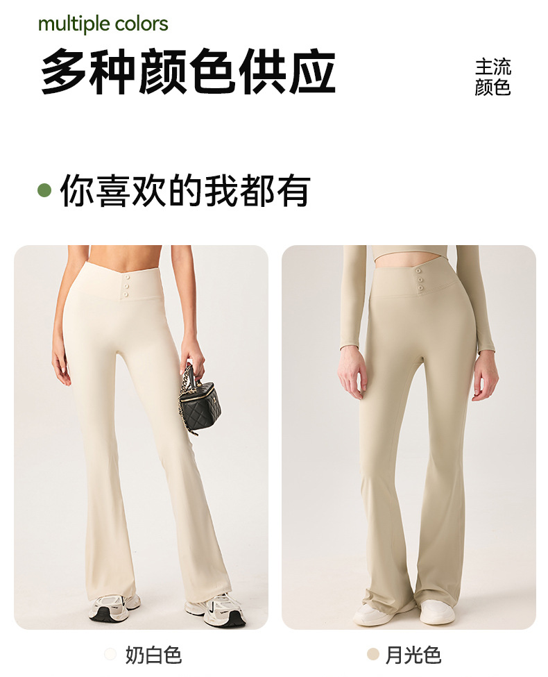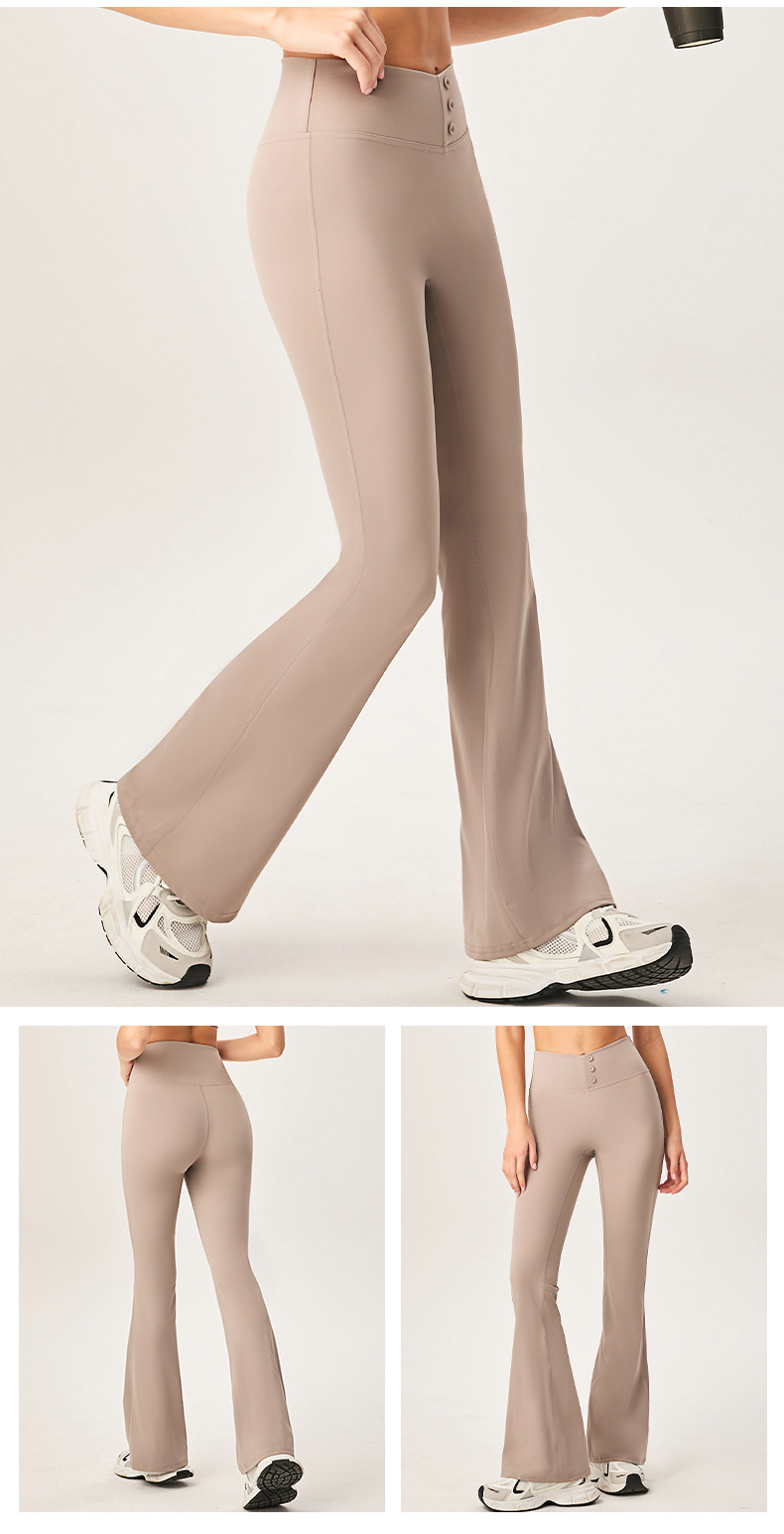 누드톤 마이크로 플레어 요가 하이웨이스트 힙업 캐주얼 스포츠 피트니스 크로스보더 롱 팬츠 엉덩이 리프팅 탄력 슬리밍 와이드 팬츠