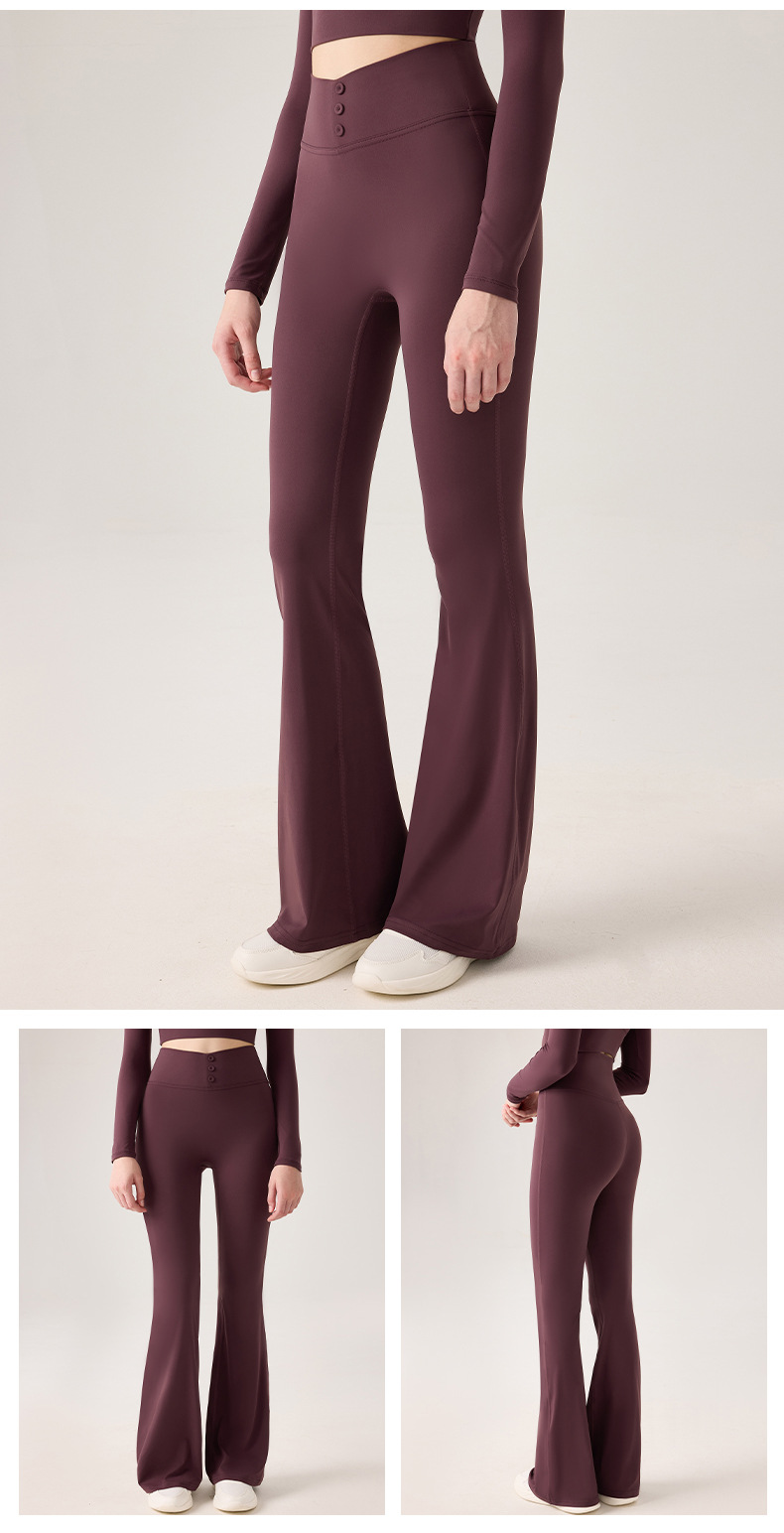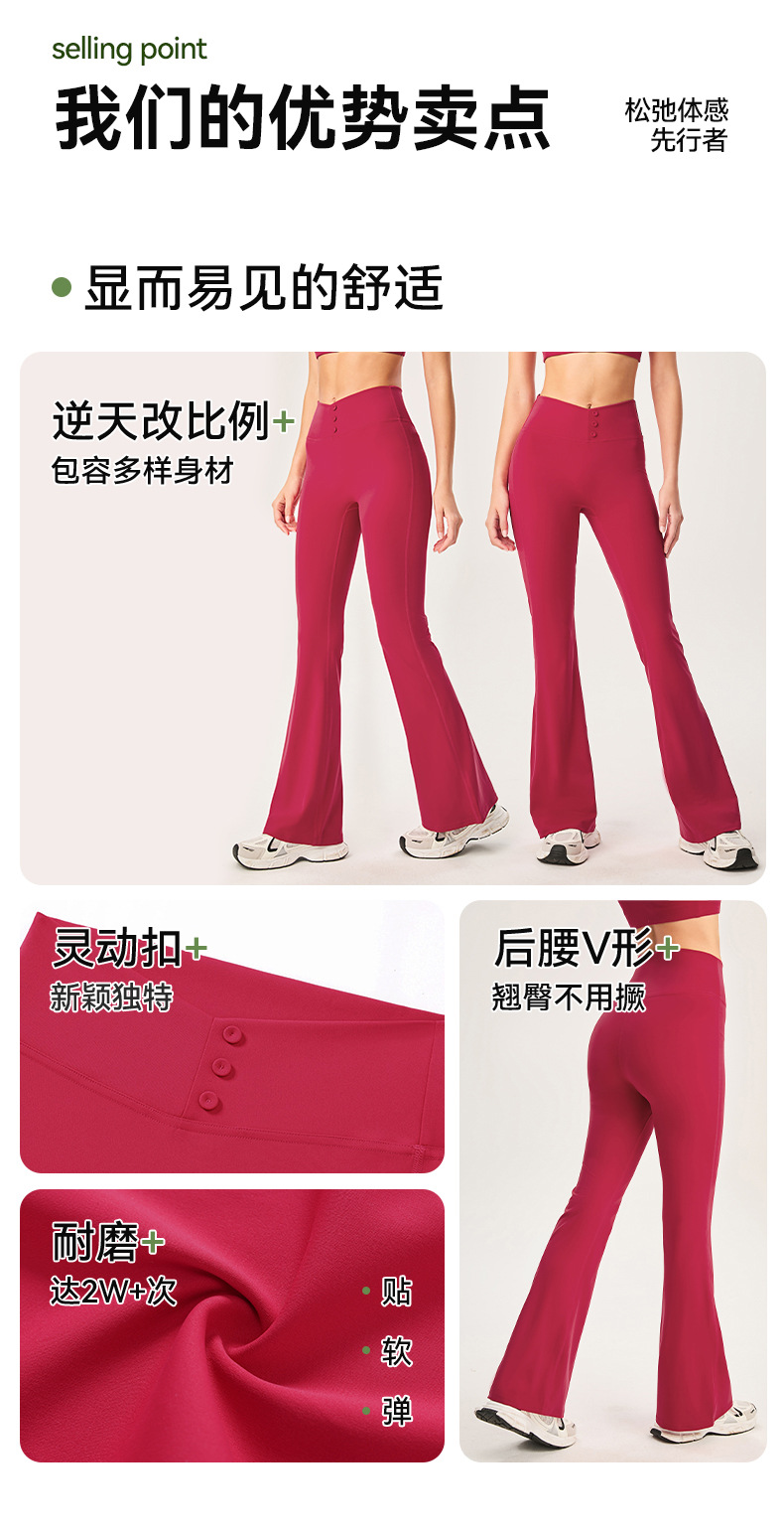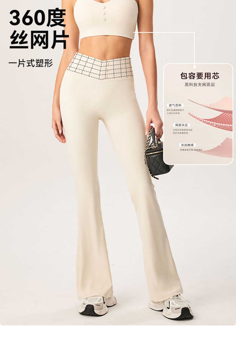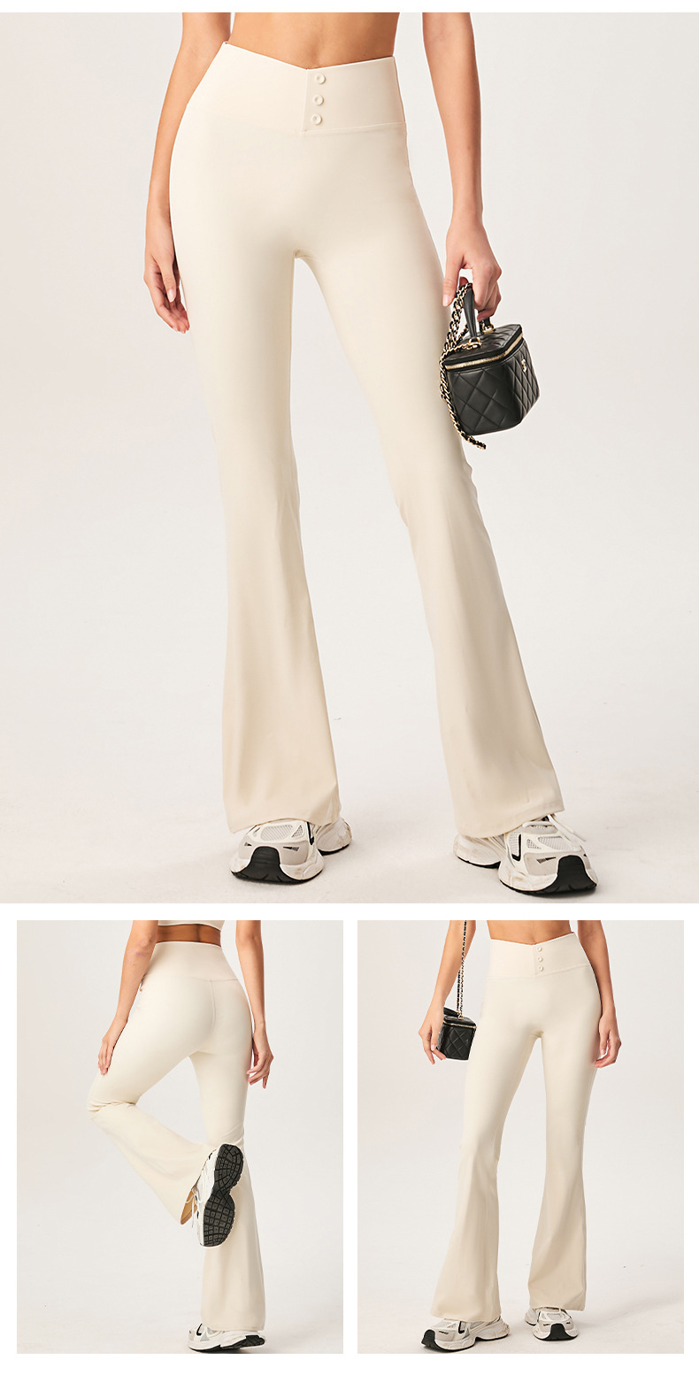 누드톤 마이크로 플레어 요가 하이웨이스트 힙업 캐주얼 스포츠 피트니스 크로스보더 롱 팬츠 엉덩이 리프팅 탄력 슬리밍 와이드 팬츠