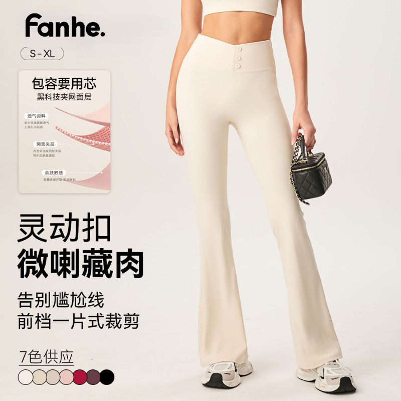 누드톤 마이크로 플레어 요가 하이웨이스트 힙업 캐주얼 스포츠 피트니스 크로스보더 롱 팬츠 엉덩이 리프팅 탄력 슬리밍 와이드 팬츠스토어 가기