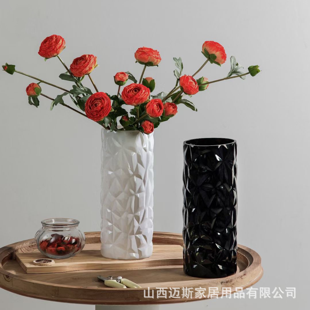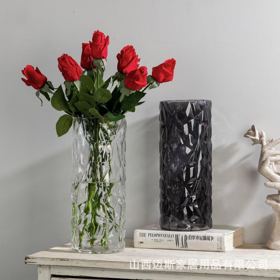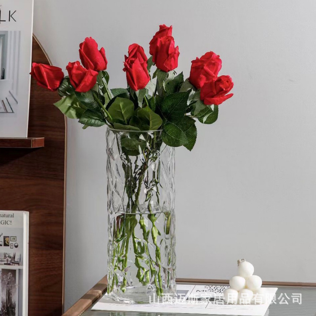 창조적 인 빙하 유리 스트레이트 꽃병 가정용 간단한 수경 식탁 꽃 세트 거실 침실 데스크탑 하이 엔드 장식품