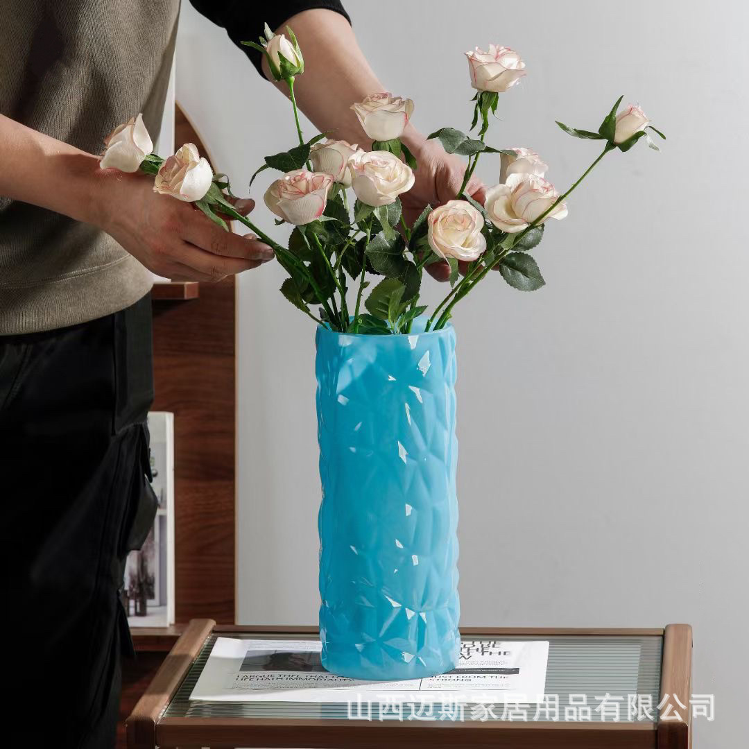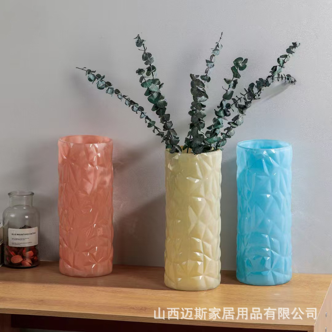 창조적 인 빙하 유리 스트레이트 꽃병 가정용 간단한 수경 식탁 꽃 세트 거실 침실 데스크탑 하이 엔드 장식품스토어 가기