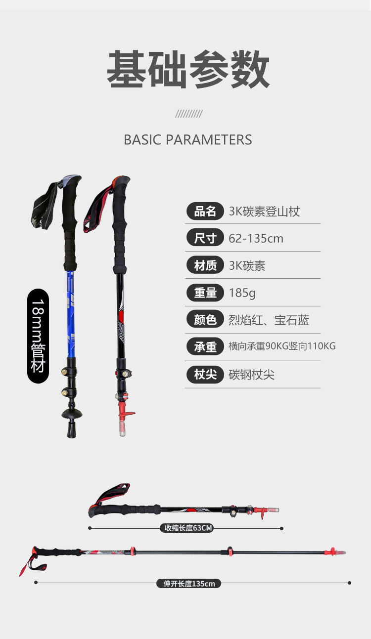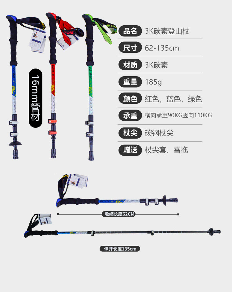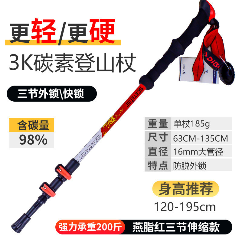 X3R 탄소 섬유 등반 스틱 전문 야외 등반 하이킹 스틱 초경량 슈퍼 하드 탄소 텔레스코픽 스틱