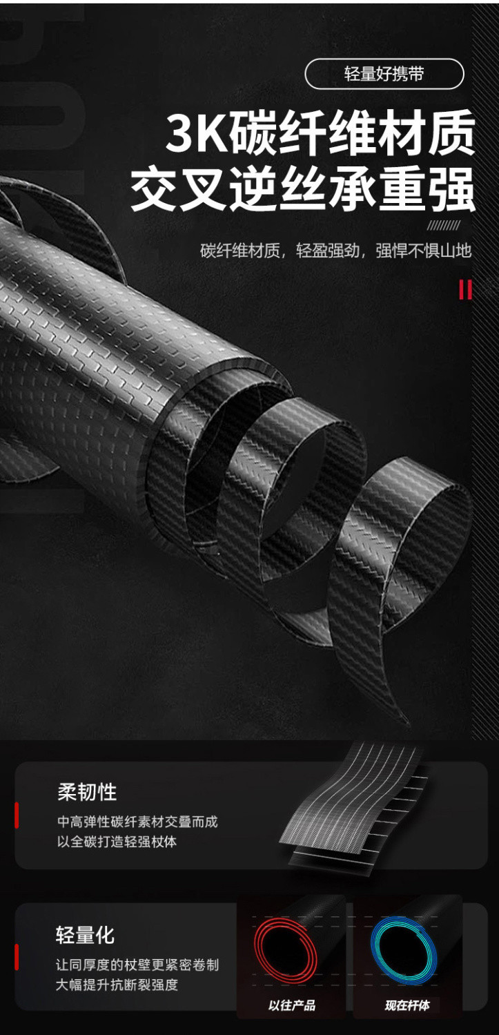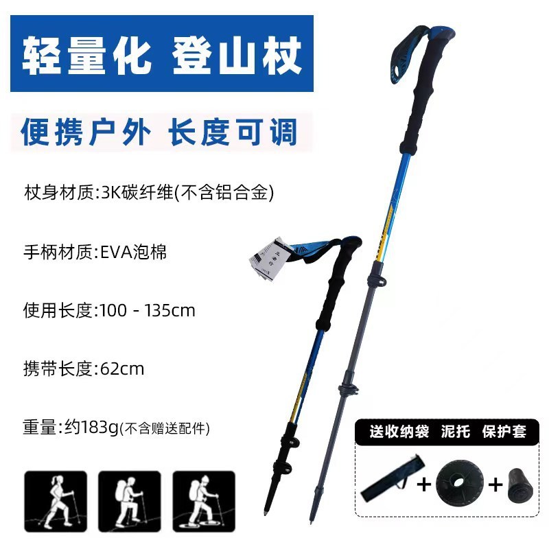 X3R 탄소 섬유 등반 스틱 전문 야외 등반 하이킹 스틱 초경량 슈퍼 하드 탄소 텔레스코픽 스틱스토어 가기