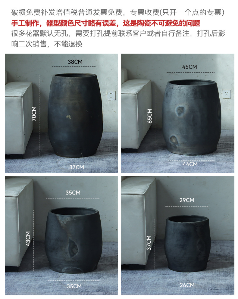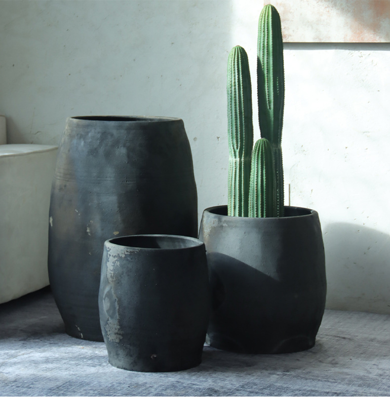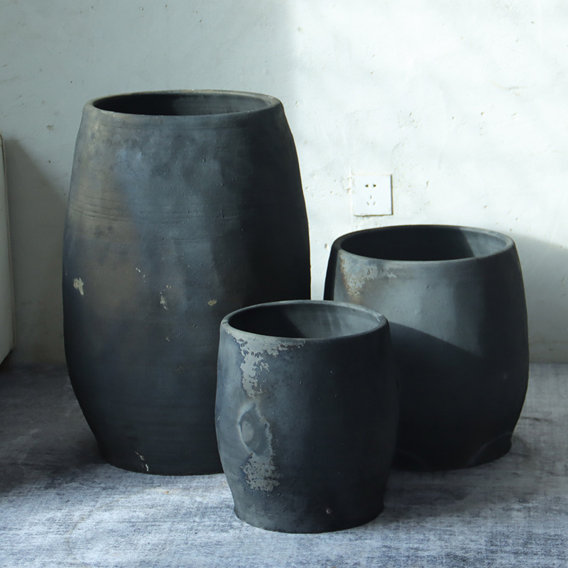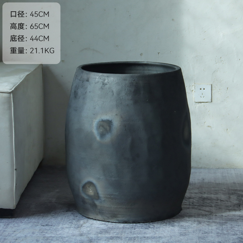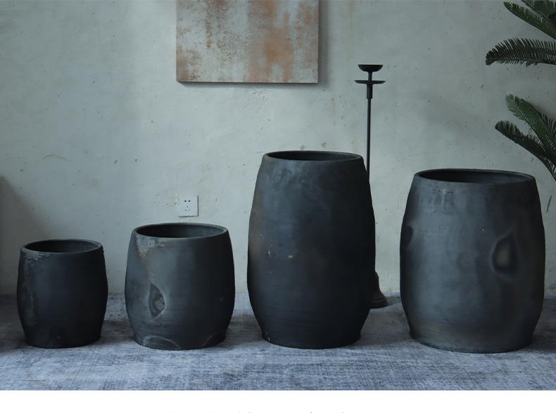 재고 조용한 바람 검은 도자기 항아리 정원 조경 정원 지구 도자기 빈티지 시추 및 회화 도자기 항아리 통기성 대형 홈스테이 장식스토어 가기