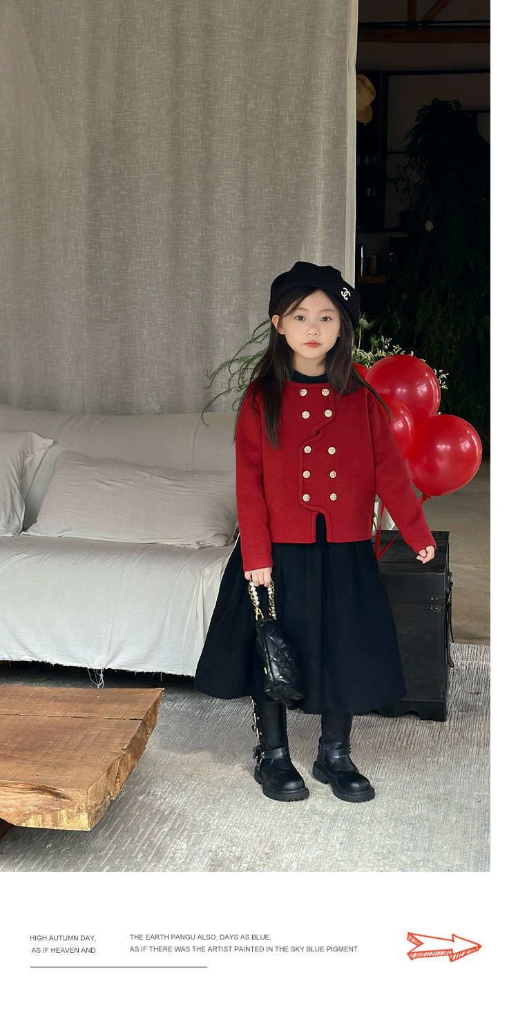 반품 불가, 정가 82원 세트, 여아용 우아한 겨울 신년복, 더블 버튼 레드 니트 가디건