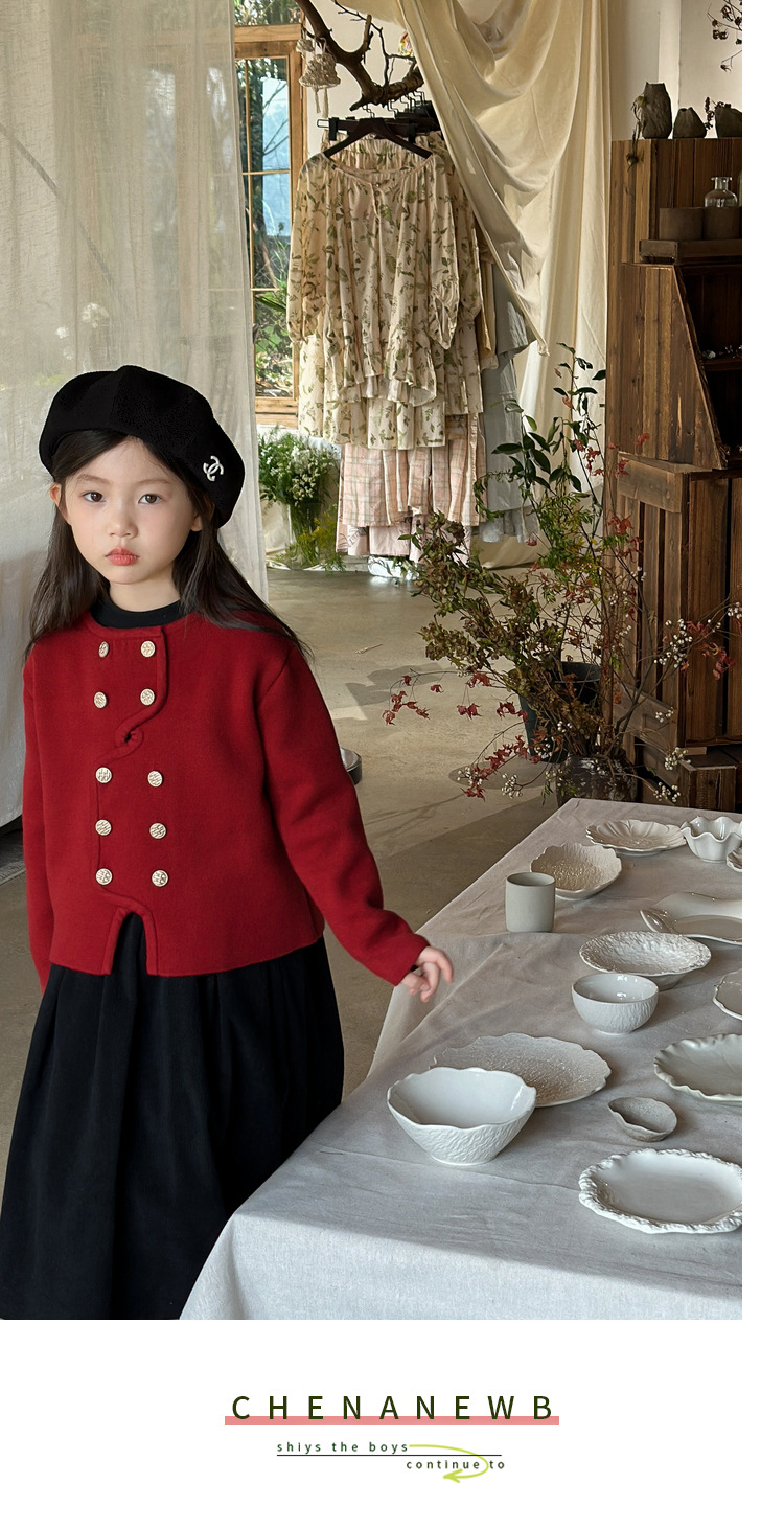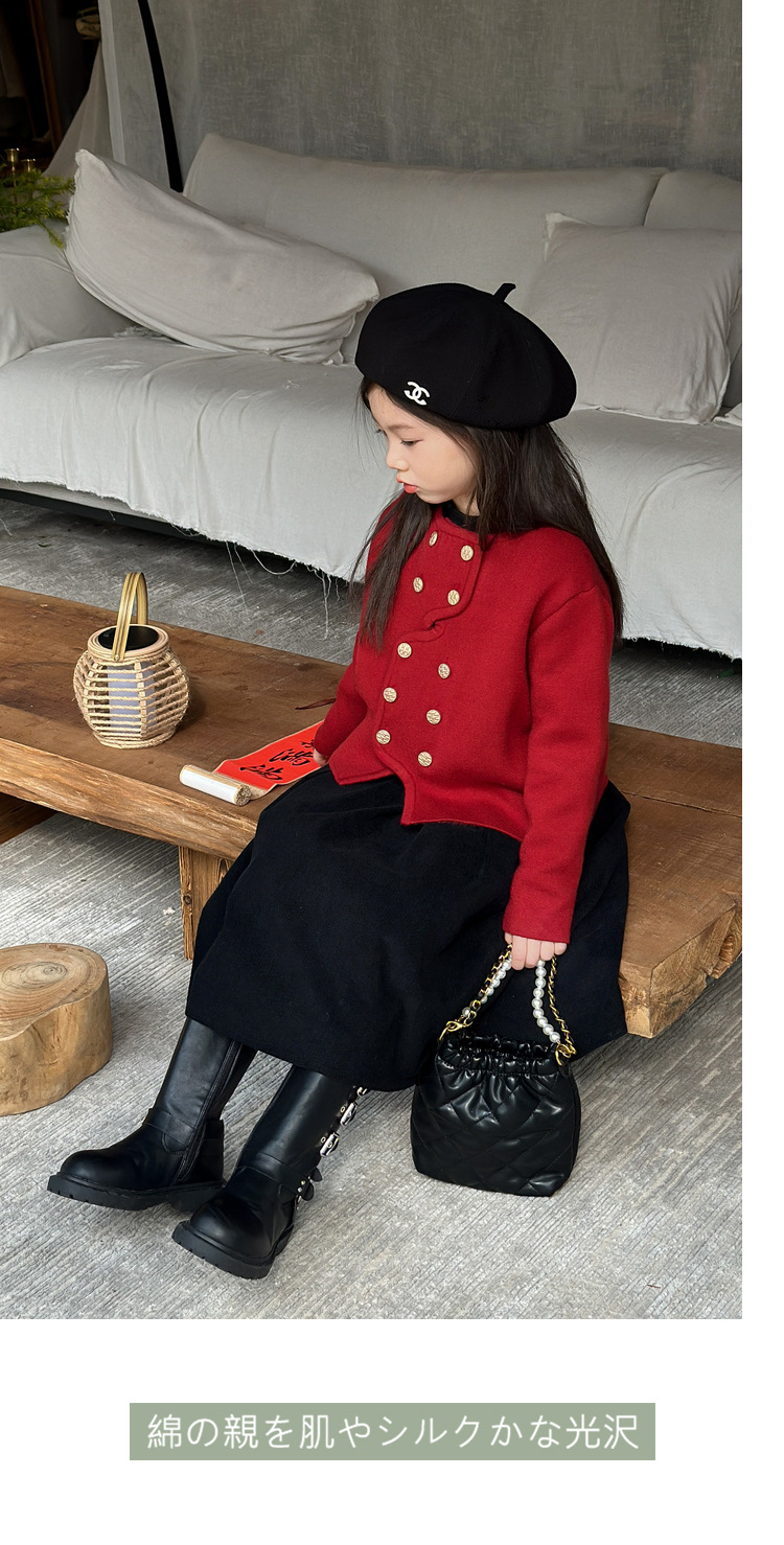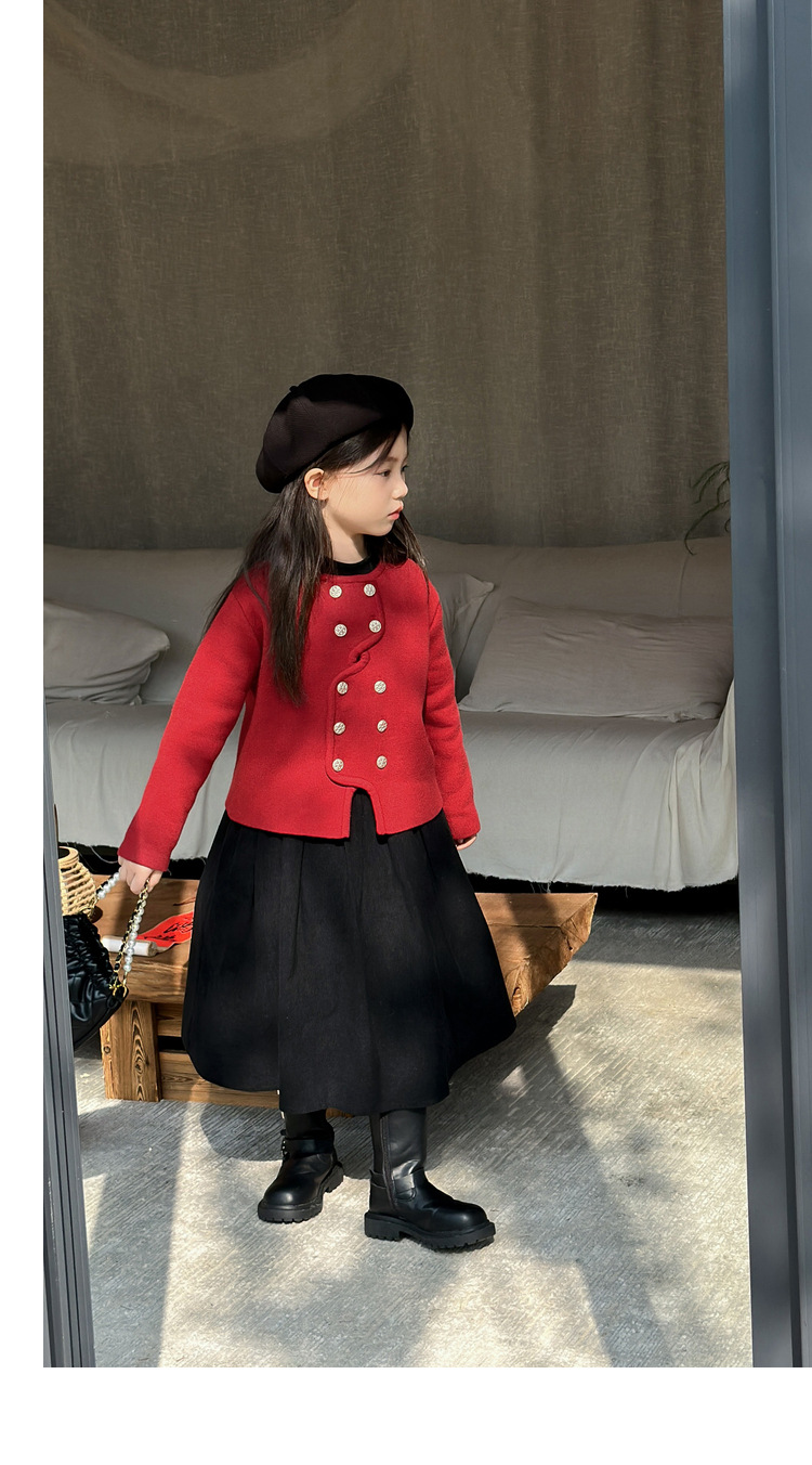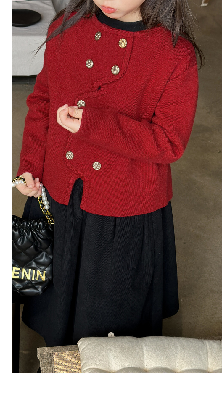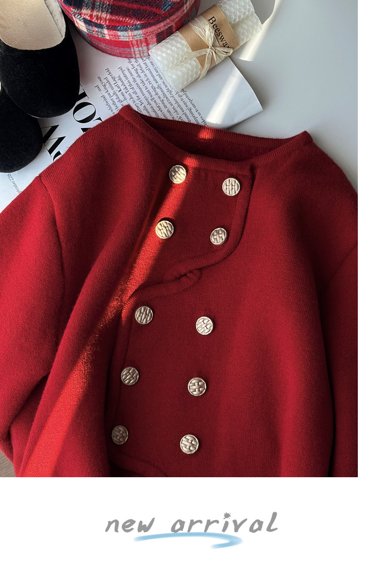 반품 불가, 정가 82원 세트, 여아용 우아한 겨울 신년복, 더블 버튼 레드 니트 가디건스토어 가기