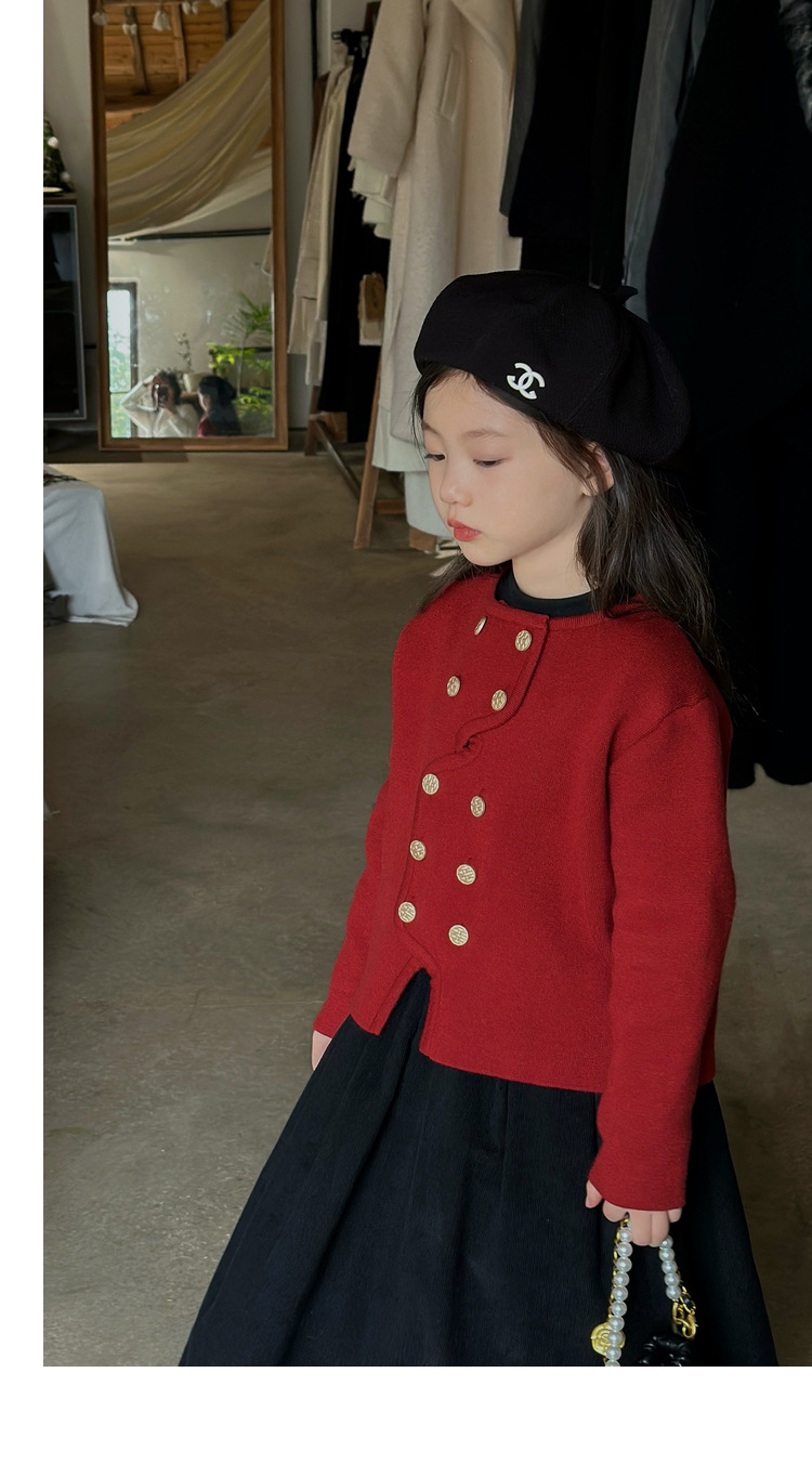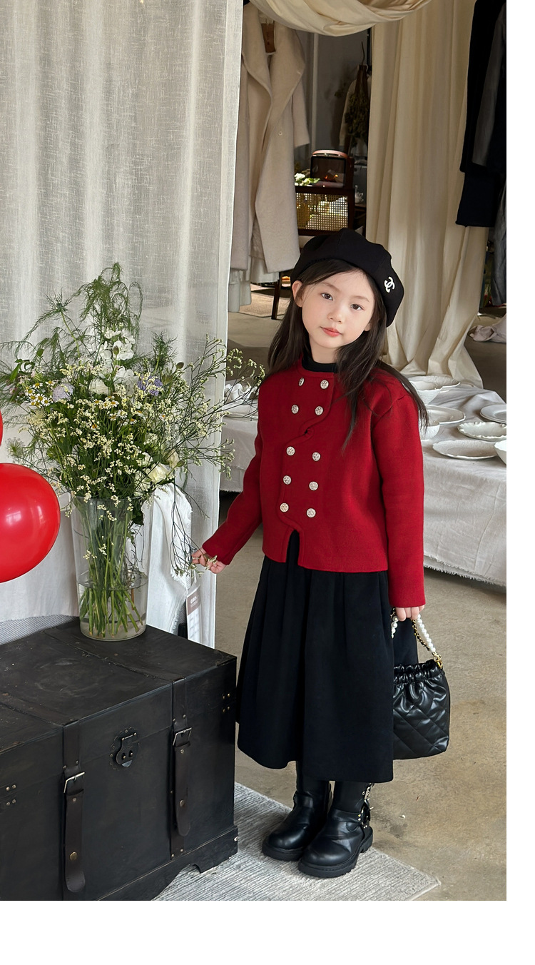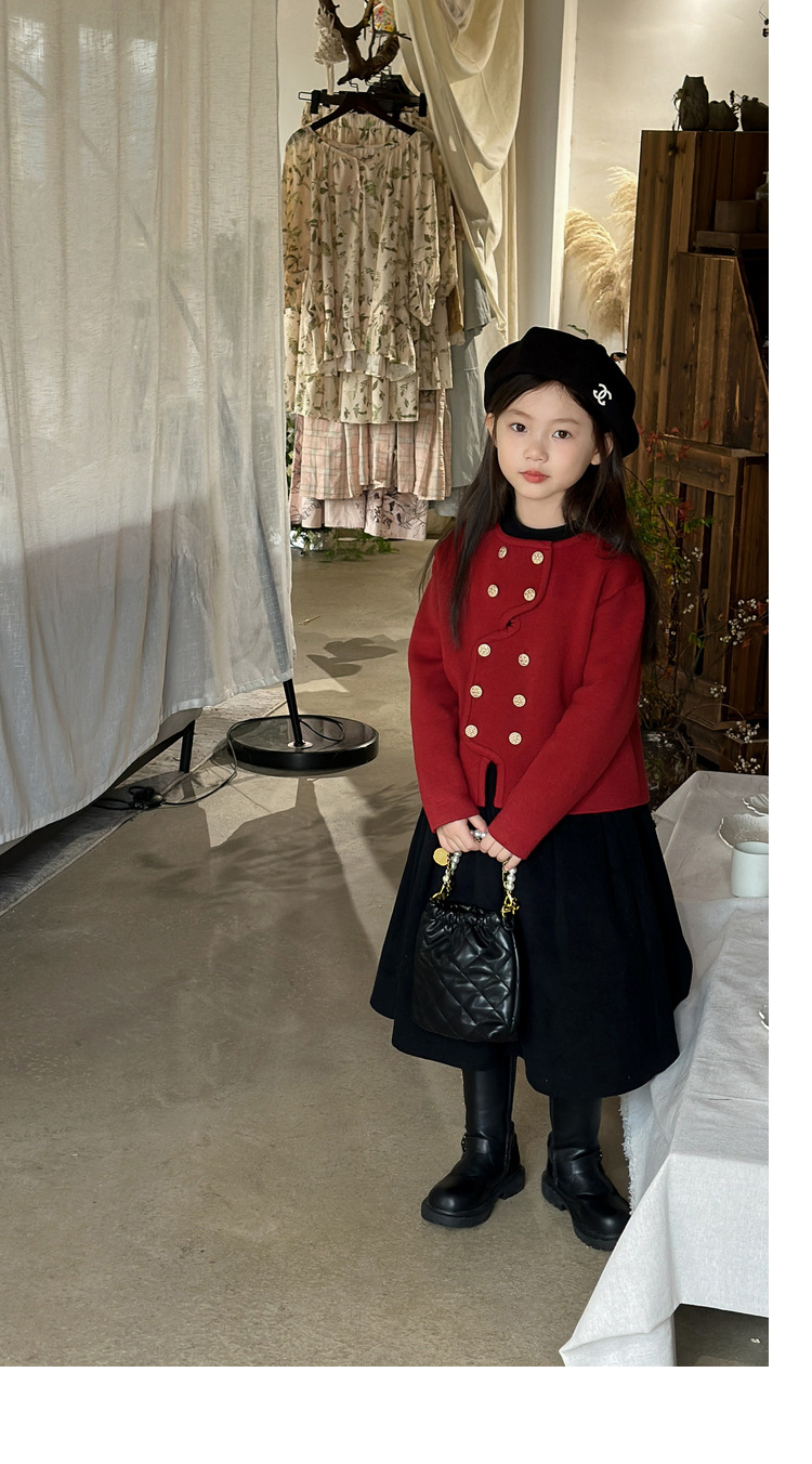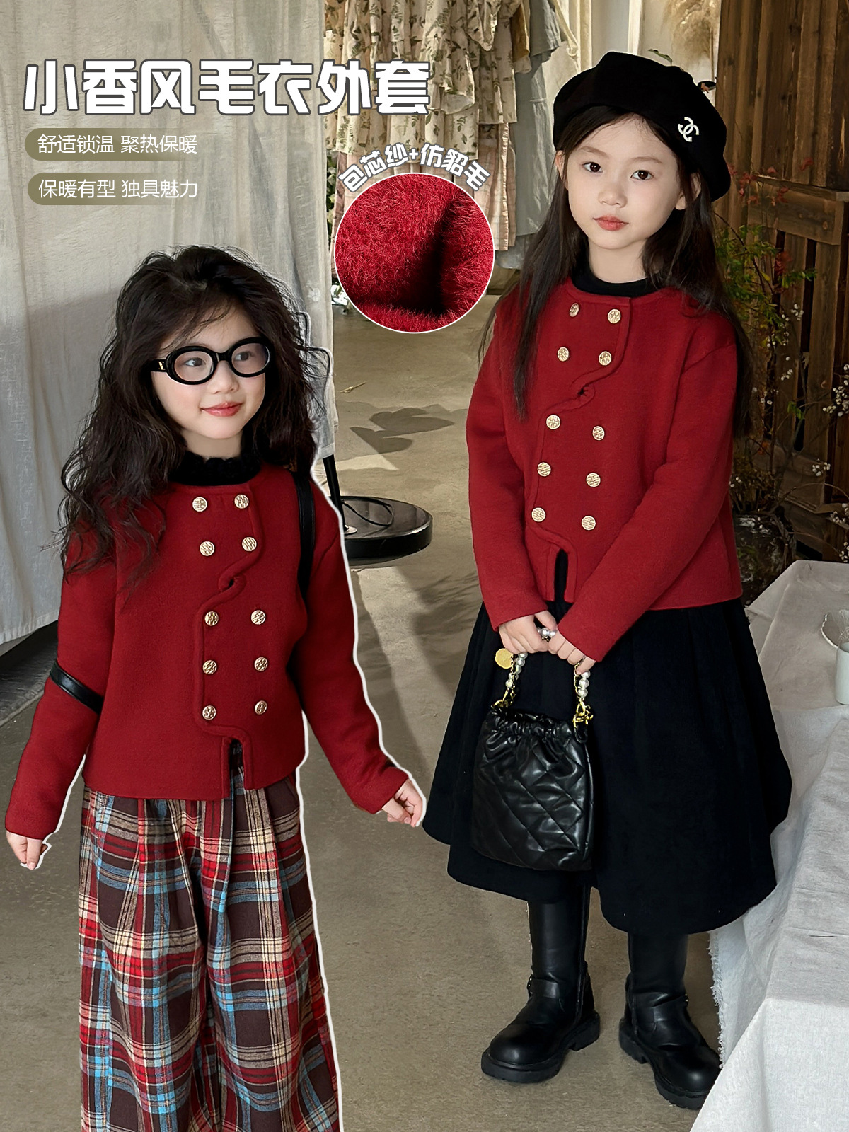 반품 불가, 정가 82원 세트, 여아용 우아한 겨울 신년복, 더블 버튼 레드 니트 가디건스토어 가기