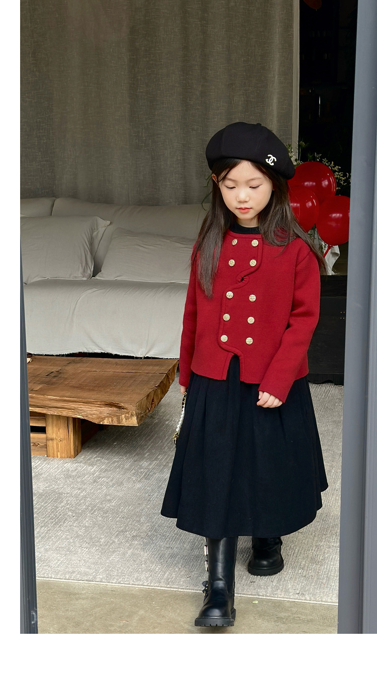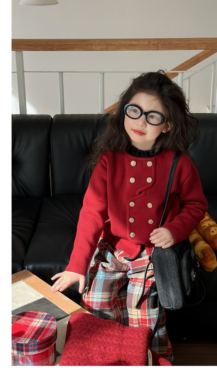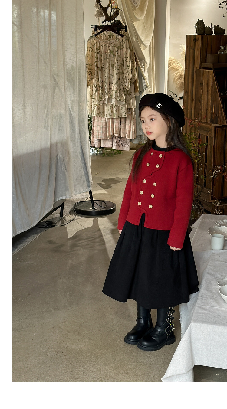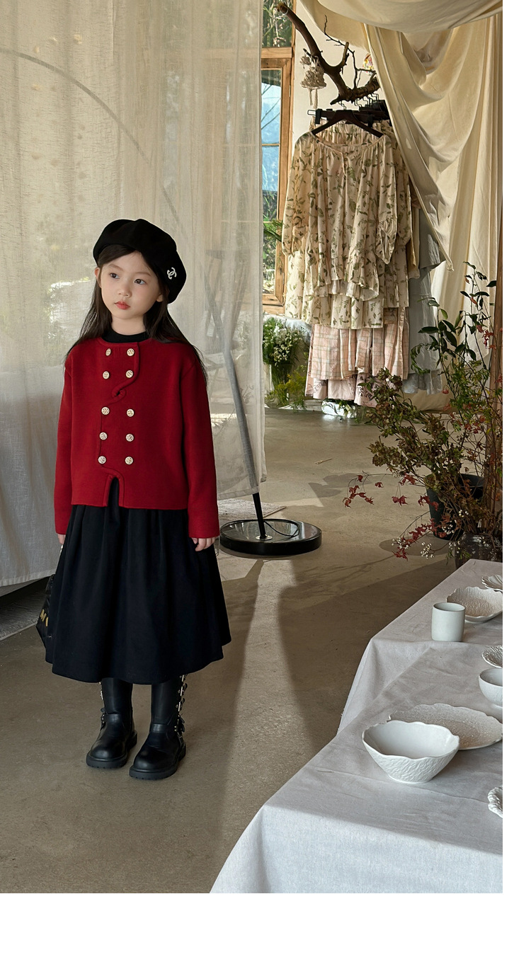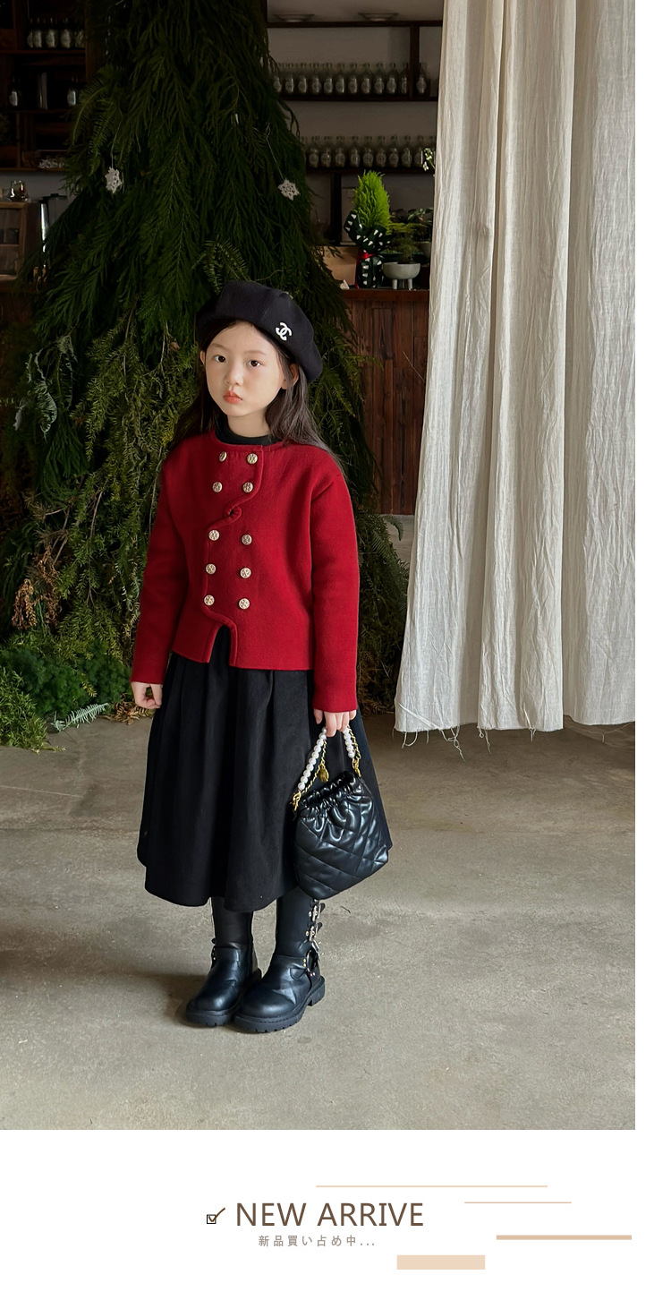반품 불가, 정가 82원 세트, 여아용 우아한 겨울 신년복, 더블 버튼 레드 니트 가디건스토어 가기