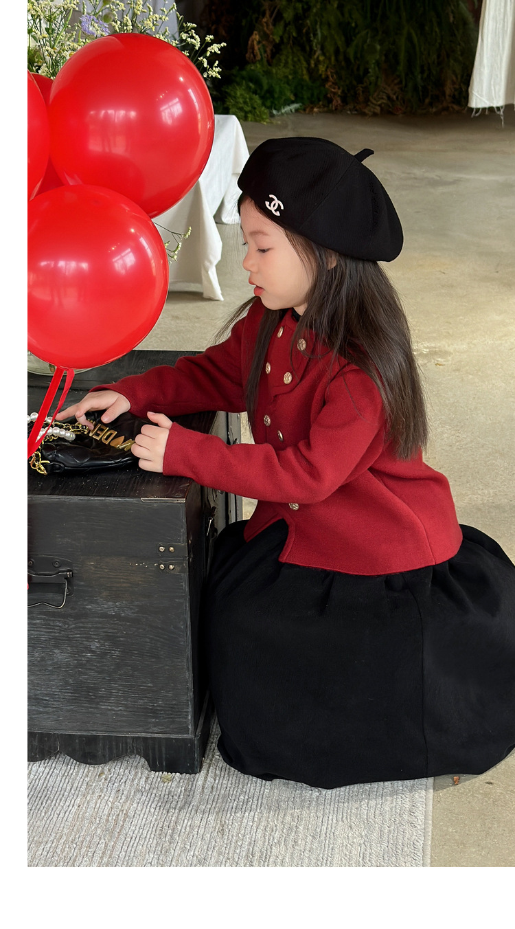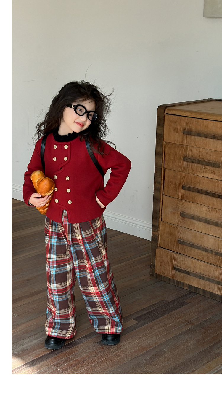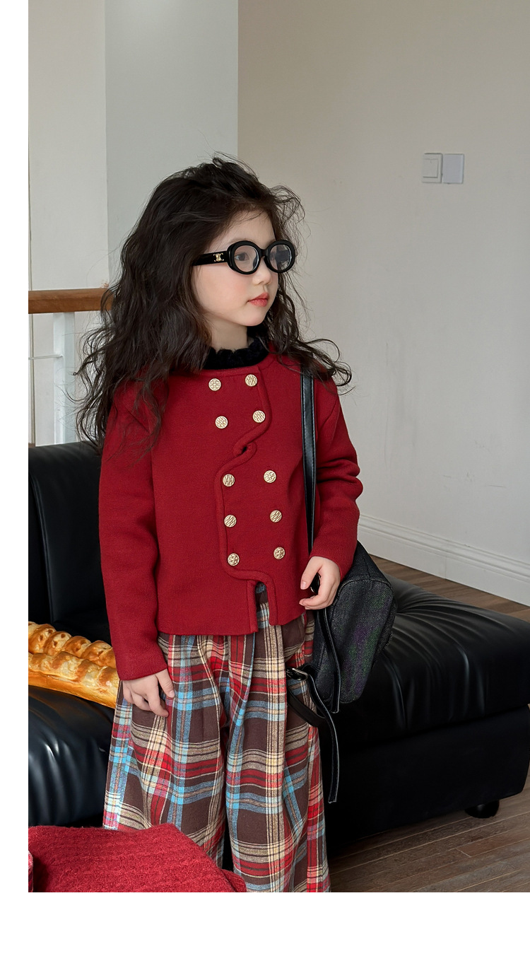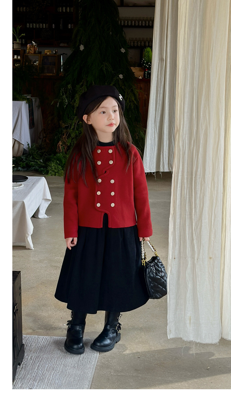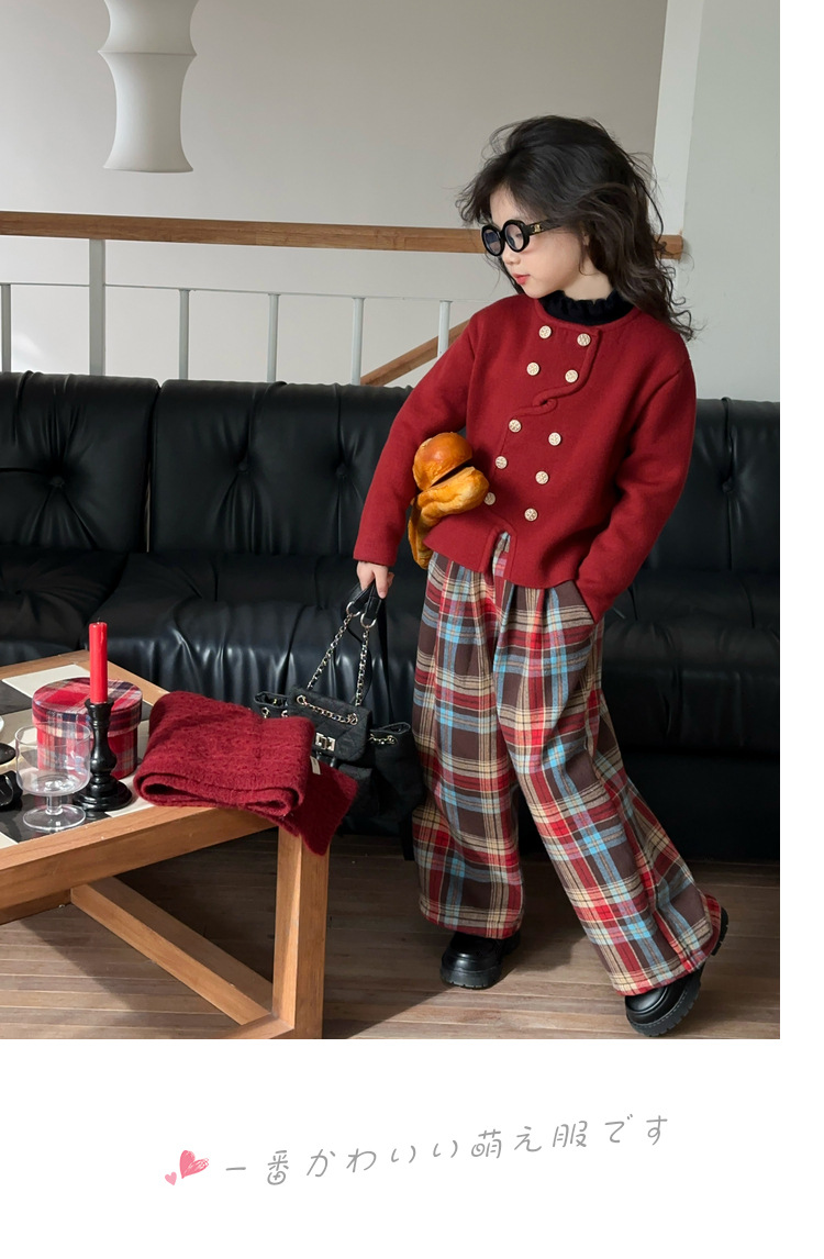 반품 불가, 정가 82원 세트, 여아용 우아한 겨울 신년복, 더블 버튼 레드 니트 가디건스토어 가기