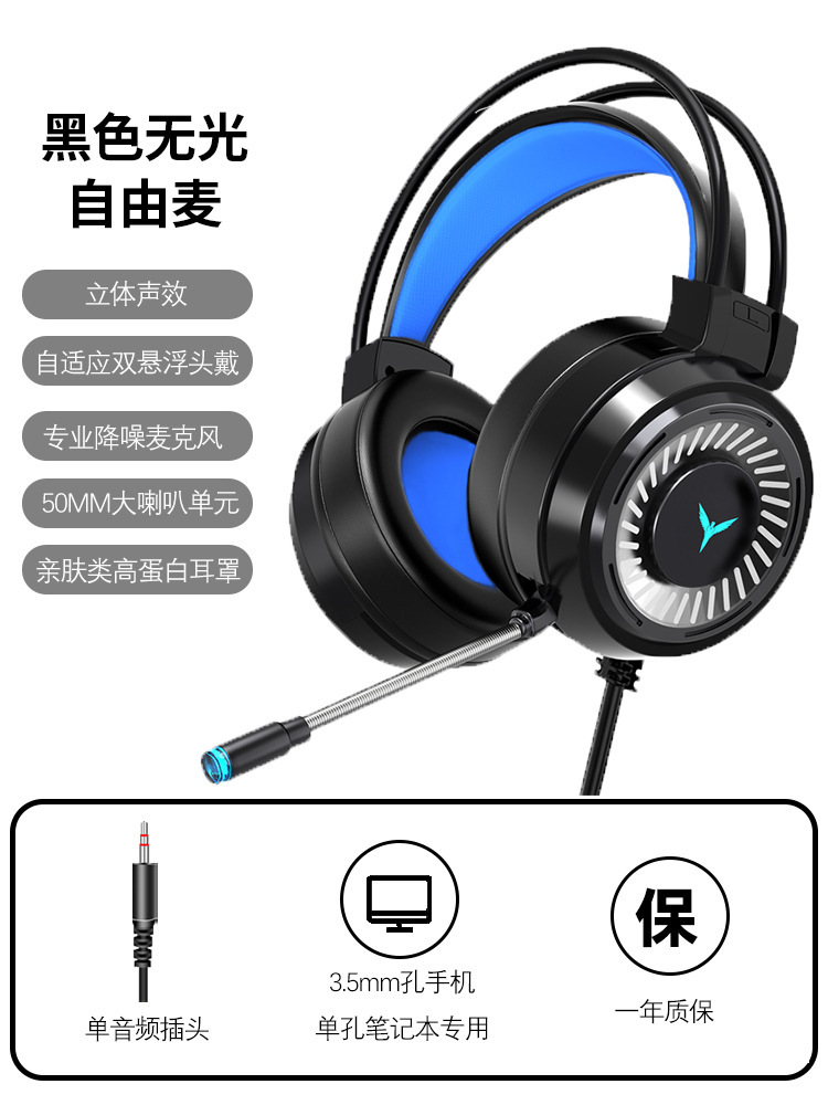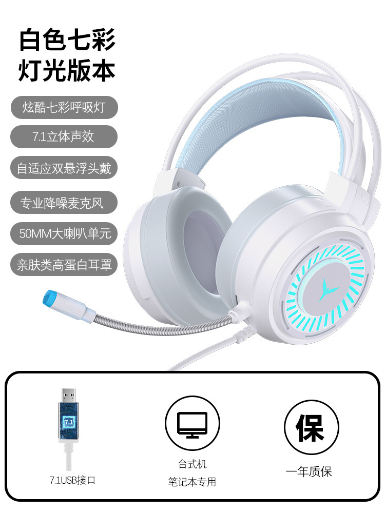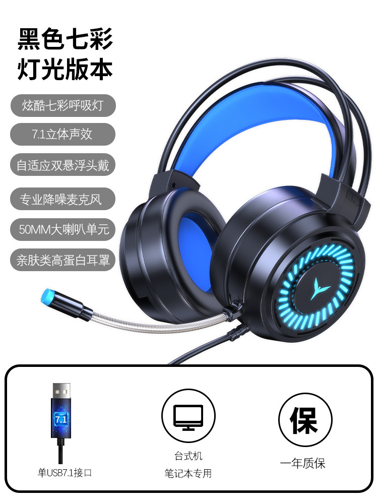 크로스보더 발광 헤드셋 컴퓨터 게임용 유선 헤드셋 7.1 싱글 USB e스포츠 헤드셋 노트북 헤드셋