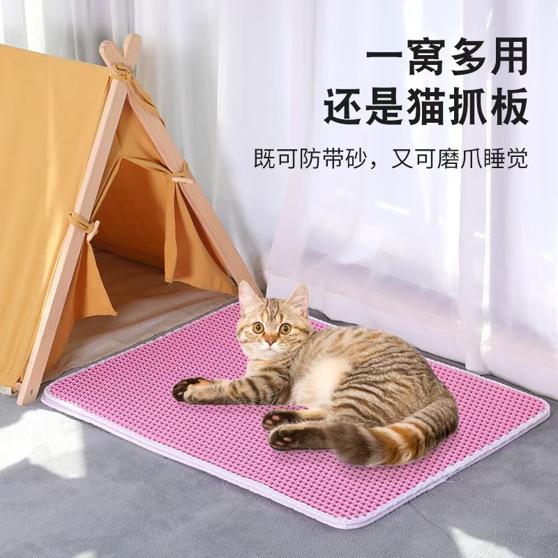 소스 맞춤형 이중층 모래 제어 매트 EVA 세척 가능 소재 내마모성 및 긁힘 방지 고양이 모래 분지 매트 맞춤형 라벨