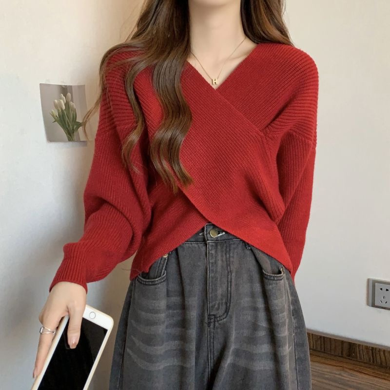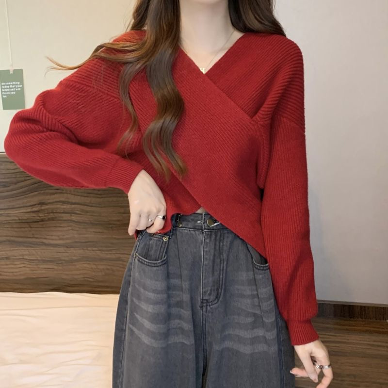 국경 간 공급 - 주문 접수 - 여성용 루즈한 짧은 스웨터 탑