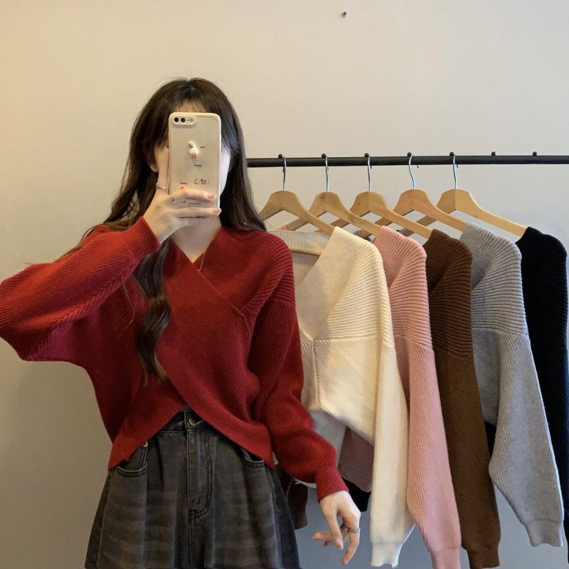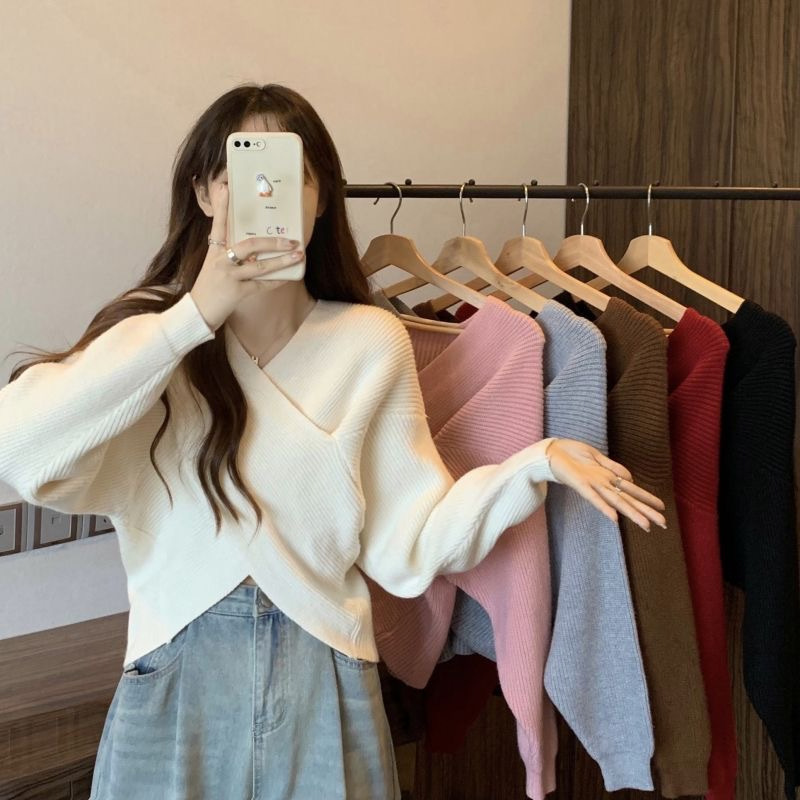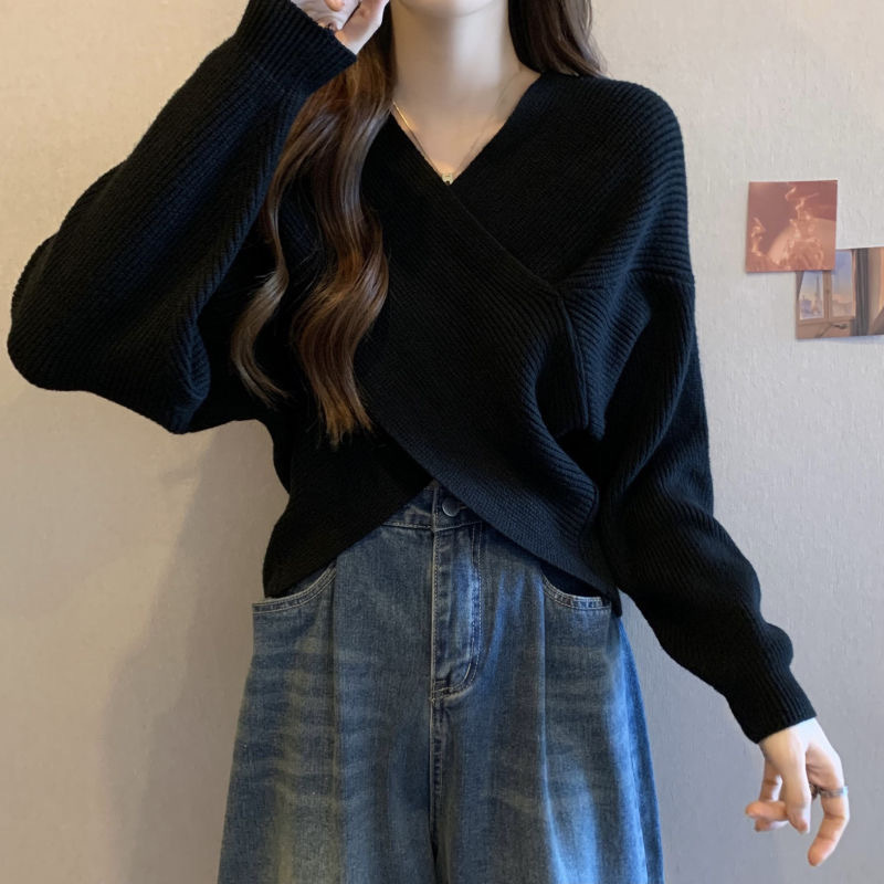 국경 간 공급 - 주문 접수 - 여성용 루즈한 짧은 스웨터 탑스토어 가기