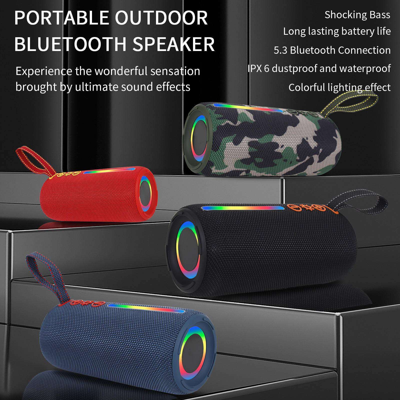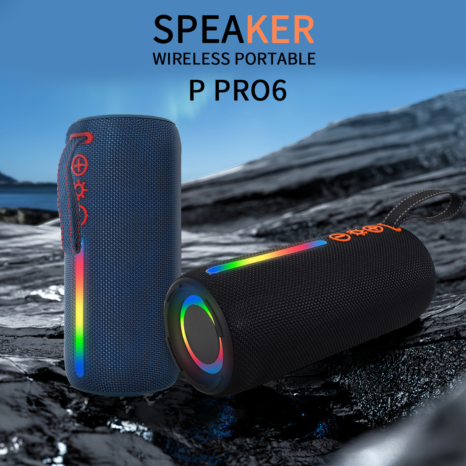 국경 간 뜨거운 판매 P PRO6 무선 블루투스 스피커 RGB 빛 야외 휴대용 카드 서브 우퍼 오디오