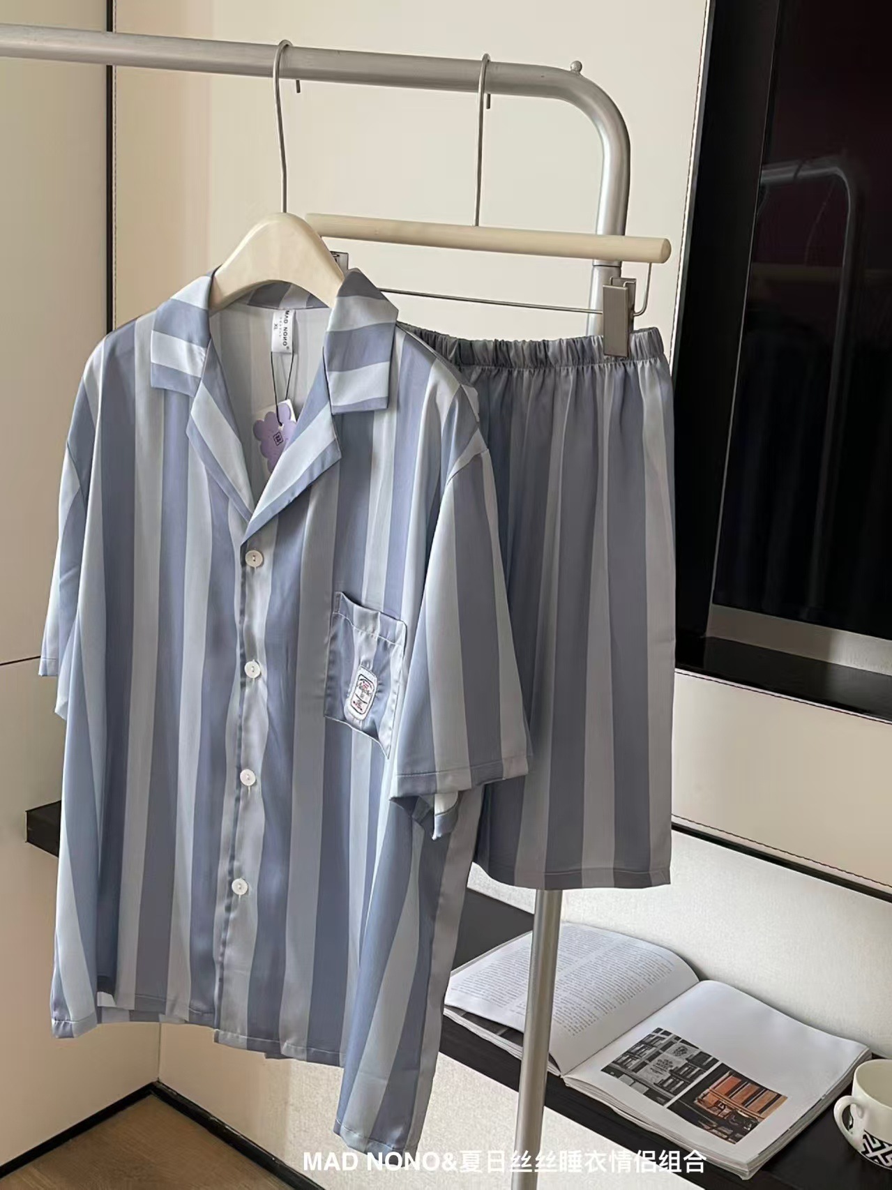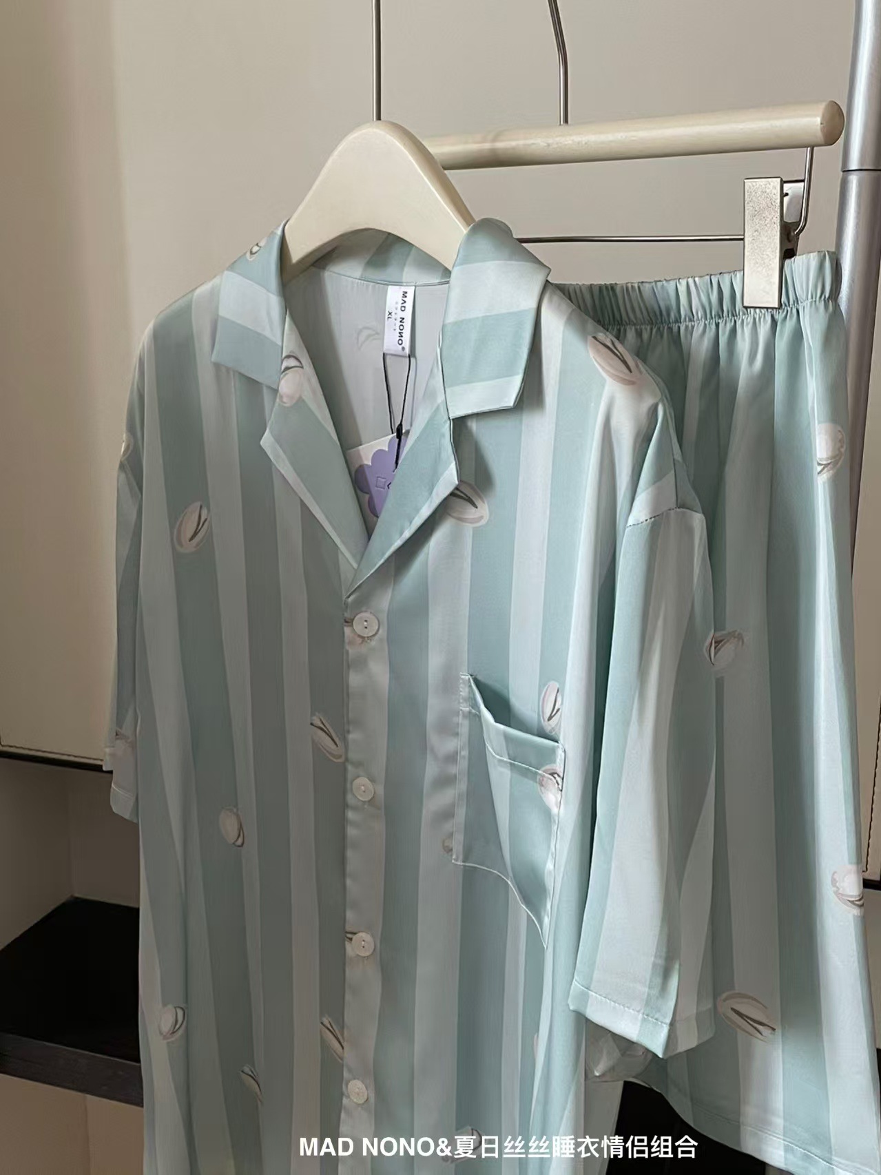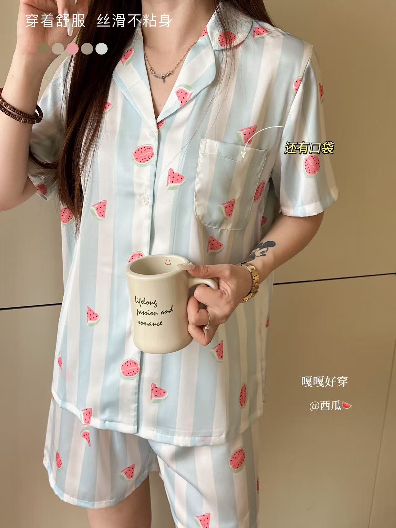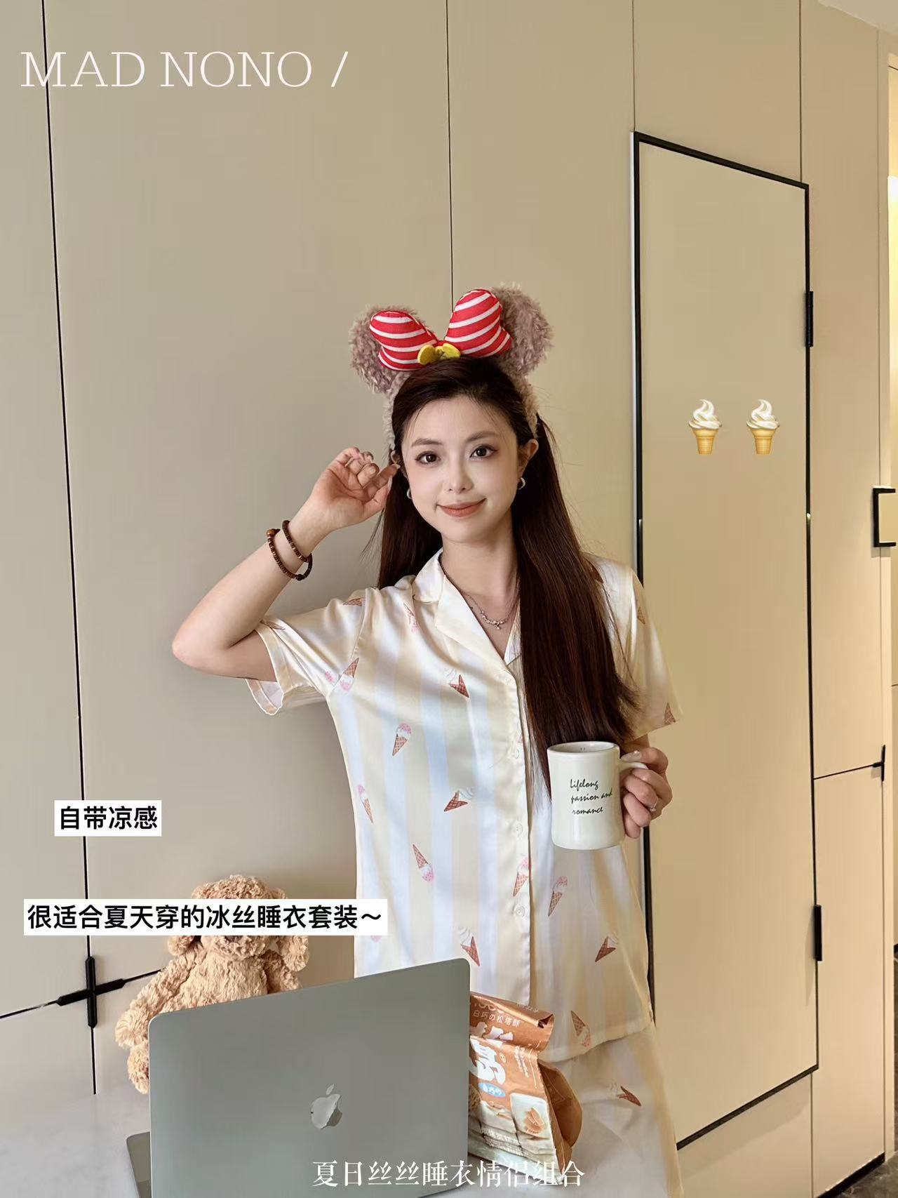 여성용 잠옷, 여름용 아이스 실크 커플 잠옷, 여성용 여름 반바지, 반팔, 얇은 스타일, 홈웨어, 편안한 가정복 세트